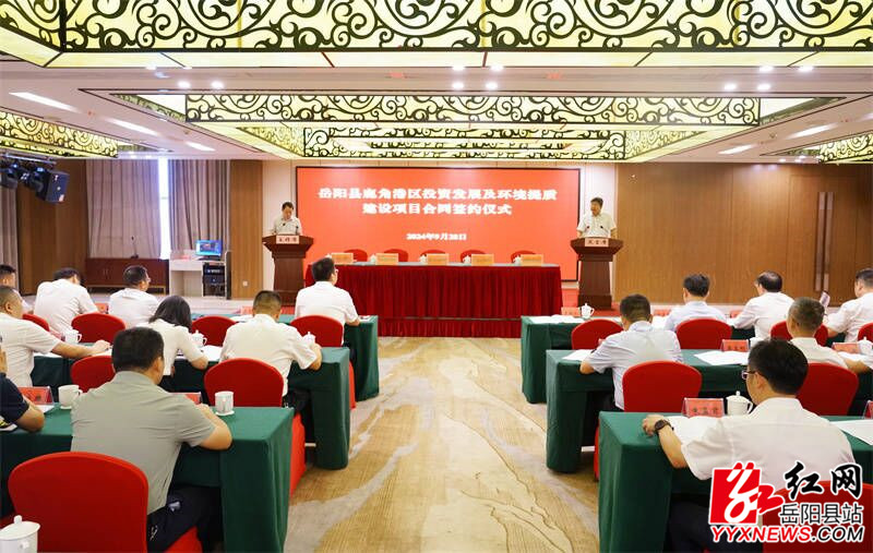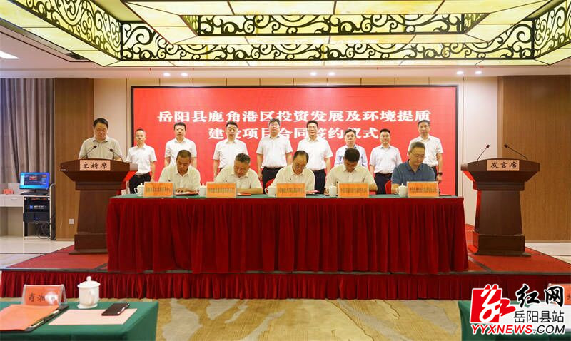 嶽陽縣融媒體中心9月29日訊(記者 熊佳 周星亮)9月28日,嶽陽縣與中國鐵建聯合體就鹿角港區投資發展及環境提質建設項目舉行簽約儀式,共同開啟港城融合發展項目建設新篇章,為助推長江經濟帶綠色發展,加速推進“四區”建設,牢牢站穩全省高質量發展第一方陣注入新活力、積蓄新動能。中鐵建發展集團有限公司總經理、黨委副書記於程水,縣委書記肖湘暉出席並致辭,縣委副書記、縣長吳光文主持,縣領導周峰、周裏、王靖、童勳海、胡海平、張文毅、李櫻及中國鐵建聯合體單位相關負責人等出席。