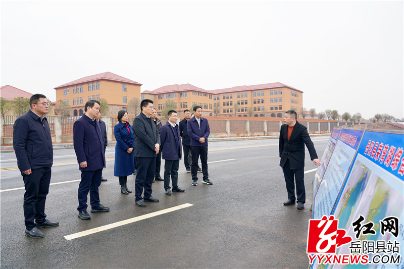 肖湘暉一行在榮灣湖西片區察看嶽陽科技職業學院及周邊基礎設施配套建設情況