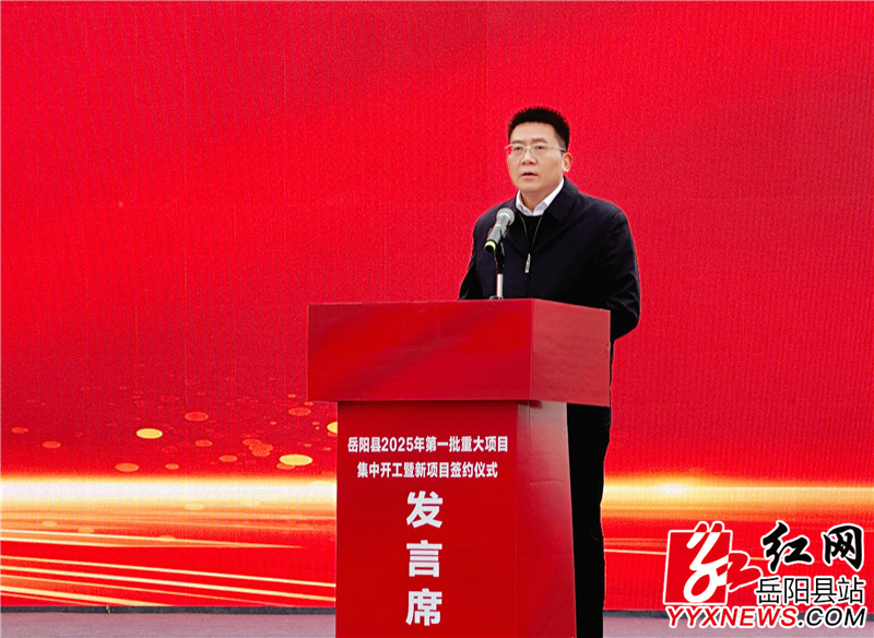 嶽陽縣融媒體中心3月7日訊(記者 付琴 熊佳 周星亮)春潮湧動洞庭畔,戰鼓催征馬蹄疾。3月7日,嶽陽縣舉行2025年第一批重大項目集中開工暨新項目簽約儀式,這既是貫徹落實市委、市政府“大抓招商、大抓項目、大抓發展”要求的具體行動,也是加快推進“四區”建設、奮力譜寫嶽陽縣高質量發展新篇章的重要舉措。市人民政府副市長陳閣輝出席並宣布開工。市人民政府副秘書長樊衛出席,縣委書記肖湘暉出席並致辭,縣委副書記、縣長吳光文主持開工儀式。