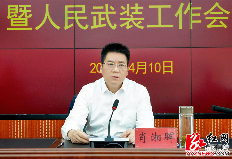 嶽陽縣融媒體中心4月10日訊(羅爽 周星亮)4月10日,縣人武部黨委(擴大)會議暨人民武裝工作會議召開。會議傳達學習湖南省軍區、嶽陽軍分區黨委全會精神,回顧總結2024年武裝工作,安排部署2025年工作。縣委書記、縣人武部黨委第一書記肖湘暉出席並講話,強調要深入貫徹習近平強軍思想和新時代政治建軍方略,忠實履行好黨管武裝政治責任,加強國防動員和後備力量的建設,推動人民武裝工作高質量發展。縣人武部黨委書記、政治委員楚海軍,縣人武部黨委副書記、部長張海波參加。