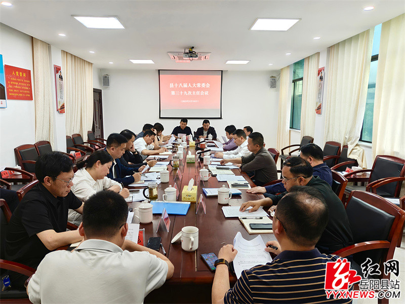 嶽陽縣融媒體中心4月16日訊(羅爽)4月16日,縣人大常委會主任、黨組書記周峰主持召開縣十八屆人大常委會第三十九次主任(擴大)會議,黨組副書記、副主任王衛兵,副主任彭碧芳、胡秉陽、吳承棉、任三星參加會議。