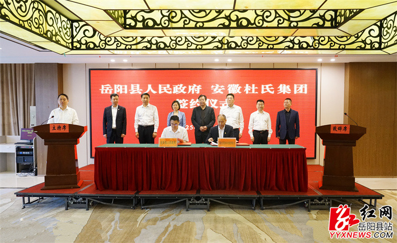 嶽陽縣融媒體中心4月22日訊(熊佳 羅爽 尹宇豪)春滿巴陵千帆競,政企攜手啟新程。4月22日上午,嶽陽縣人民政府與安徽杜氏新材料科技集團有限公司成功簽訂投資協議。50億元矽基材料項目的正式落地,既是嶽陽縣貫徹落實市委、市政府“大抓招商、大抓項目、大抓發展”的重要舉措,同時也標誌著雙方在石英砂全產業鏈開發領域的深度合作正式開啟,為嶽陽縣 “四區” 建設和矽基新材料產業發展注入強勁動力。縣委書記肖湘暉、安徽杜氏集團董事長杜永新出席並致辭,縣委副書記、縣長吳光文主持簽約儀式。縣領導宋華、周峰、周裏、王靖、賀立、胡海平、張文毅及杜氏集團相關負責人等共同見證簽約。