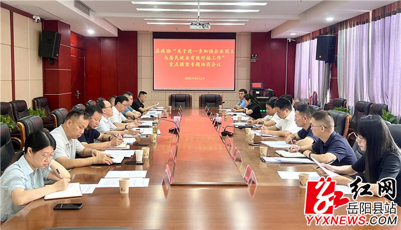 嶽陽縣融媒體中心6月12日訊(黃陽嬌)6月12日,縣政協召開“關於進一步加強企業用工與居民就業有效對接工作”重點提案專題協商會議。縣政協主席周裏出席並講話,各部門相關負責人參加。