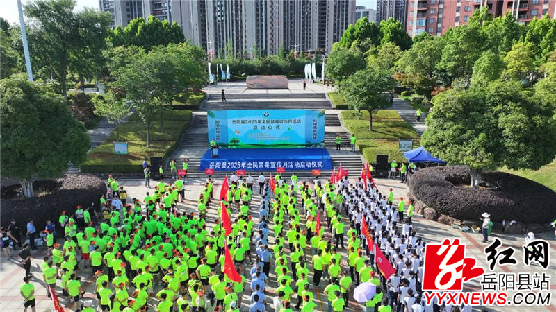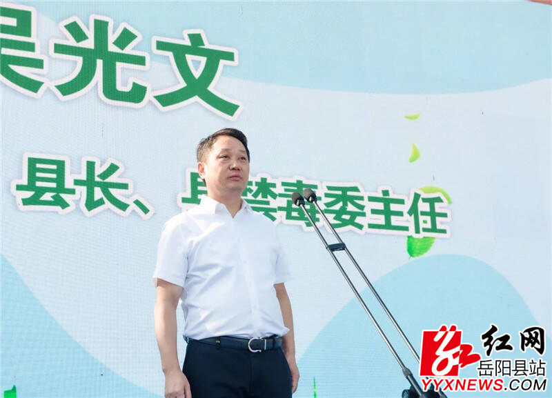 嶽陽縣融媒體中心6月18日訊(張帆 周星亮)在第38個國際禁毒日即將到來之際,6月17日上午,嶽陽縣2025年全民禁毒宣傳月活動在榮灣湖廣場啟動。縣委副書記、縣長、縣禁毒委主任吳光文出席並宣布活動正式啟動,副縣長、縣公安局局長、縣禁毒委副主任劉斌清出席並致辭。