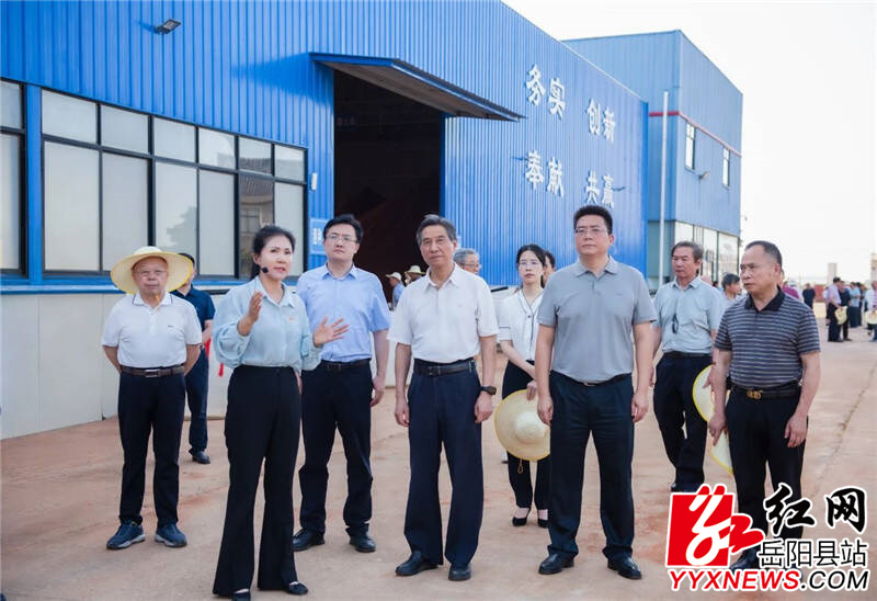 嶽陽縣融媒體中心6月18日訊(羅爽 周星亮)6月16日,省人大常委會原副主任、省老科協特邀高級顧問蔡力峰一行來我縣調研助力企業技術創新和助力鄉村振興工作,副市長邵鋒,縣委書記肖湘暉,縣委常委、組織部部長方克君,副縣長李櫻,縣政協原副主席、縣老科協會長袁文琪陪同調研。