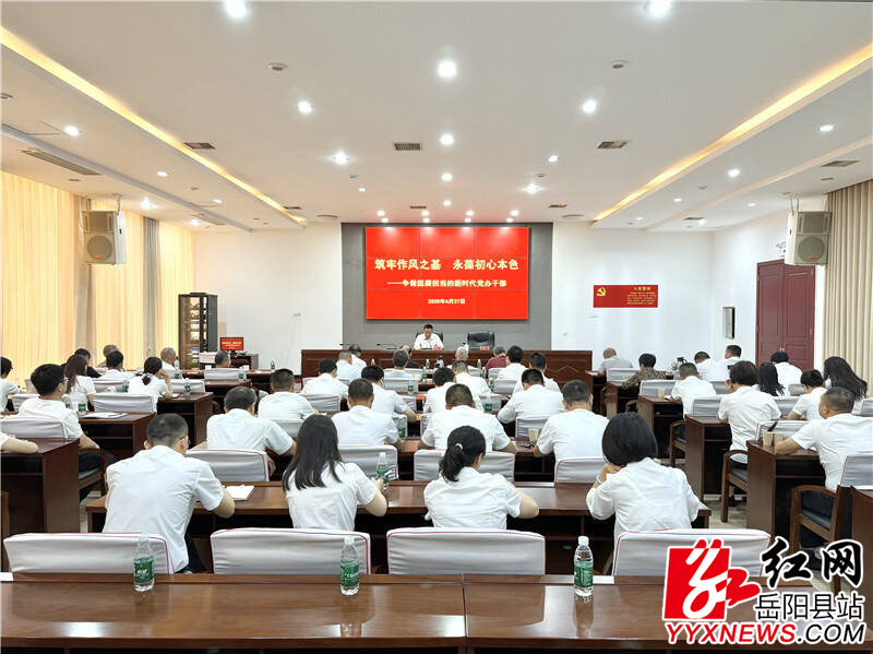 嶽陽縣融媒體中心6月27日訊(付琴)6月27日,縣委辦開展“七一”支部主題黨日活動,縣委常委、縣委辦主任、縣委辦黨總支書記王靖出席,並以《築牢作風之基 永葆初心本色——爭做挺膺擔當的新時代黨辦幹部》為主題講授黨課,縣委辦全體班子成員、縣委辦黨總支全體黨員幹部參加。