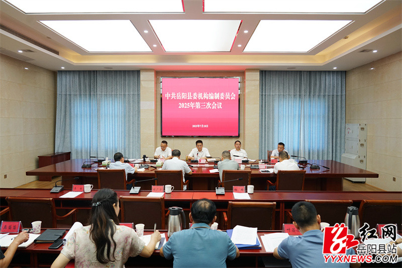 嶽陽縣融媒體中心7月11日訊(熊佳 羅爽)7月10日,縣委書記、縣委編委主任肖湘暉主持召開縣委機構編製委員會2025年第三次會議,傳達學習上級有關文件和會議精神,審議機構編製有關事項,研究嶽陽縣改革事項等。縣委副書記、縣長、縣委編委副主任吳光文,縣領導方克君、王靖、續廣寧,及縣委編委成員出席會議。
