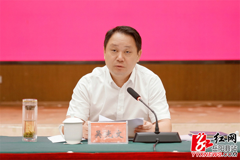 嶽陽縣融媒體中心7月29日訊(羅爽 周星亮)7月28日,全縣半年度工作講評會召開。會議深入貫徹落實黨中央決策部署和省委、市委工作要求,分析總結上半年全縣經濟運行情況,研究部署後段工作,動員全縣上下扛牢經濟大縣挑大梁責任,進一步提振信心、強化舉措,奮戰三季度、決勝下半年,奮力推動後階段工作提質增效、爭先創優。縣委書記肖湘暉主持會議並講話,縣委副書記、縣長吳光文作工作講評並部署後段工作。