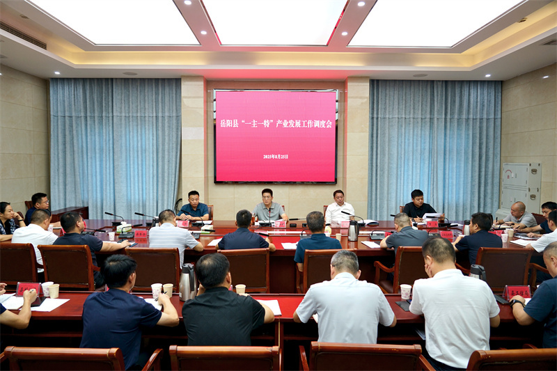 嶽陽縣融媒體中心8月26日訊(羅爽 周星亮)8月25日,縣委書記肖湘暉主持召開全縣“一主一特”產業發展工作調度會,聽取我縣醫藥健康、現代農業和綠色食品加工產業的發展情況,研究工作思路、推進舉措,就下步工作進行安排部署。他強調,要立足資源稟賦、產業基礎,發揮自身優勢,統籌推進強鏈延鏈補鏈,以更大力度、更實舉措推動“一主一特”產業提質增效、發展壯大,為縣域高質量發展注入強勁動能。縣委副書記、縣長吳光文出席並講話,縣委常委、縣委辦主任王靖,縣委常委、副縣長賀立參加。