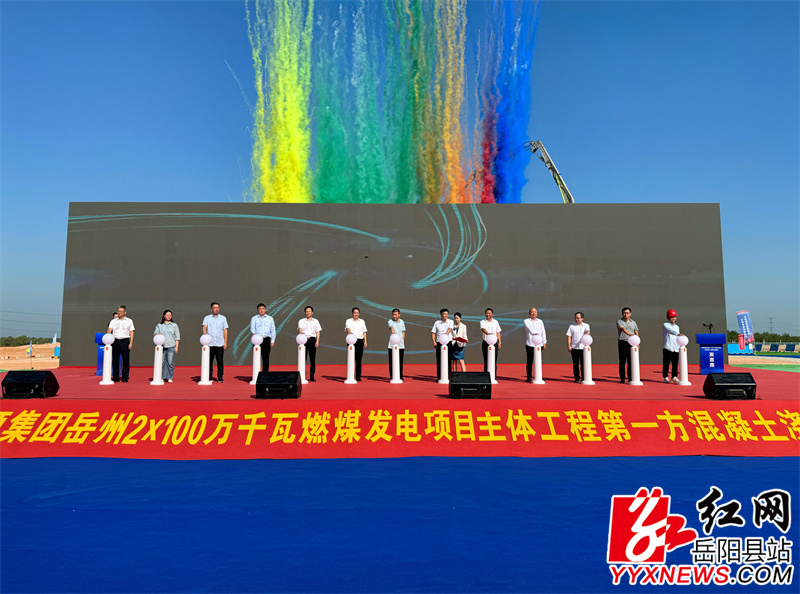 嶽陽縣融媒體中心8月28日訊(周星亮 周昱君)8月28日,湖南能源集團嶽州2×100萬千瓦燃煤發電項目主體主廠房工程第一方混凝土澆築儀式隆重舉行,標誌著嶽州電廠項目正式進入主體結構施工新階段。縣委常委、統戰部部長、協調工作專班常務副組長楊前進,副縣長續廣寧,湘能電投(嶽陽)發電有限公司董事長諶浩洪出席,中國電建集團山東電力建設第一工程有限公司、西北電力建設工程監理有限責任公司等合作方代表,縣直相關部門和鄉鎮負責人齊聚現場,共同見證項目建設關鍵節點。