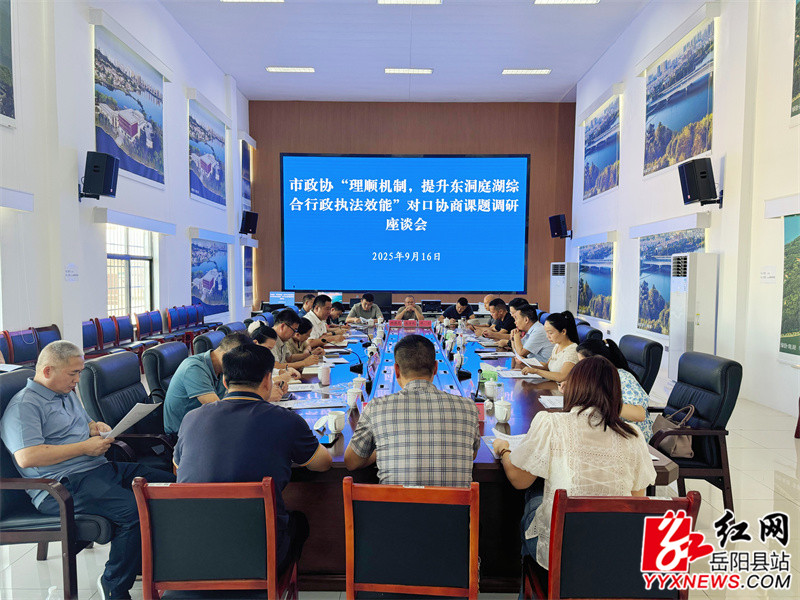 嶽陽縣融媒體中心9月16日訊(周昱君)9月16日,市政協常委、市政協社會法製和民族宗教委主任李衛兵率隊來我縣組織開展“理順機製,提升東洞庭湖綜合行政執法效能”對口協商課題調研活動,助力推動東洞庭湖綜合行政執法改革走深走實、長效見效,守護湖區生態安全與可持續發展。縣政協副主席彭榮欣及相關部門負責人參加。
