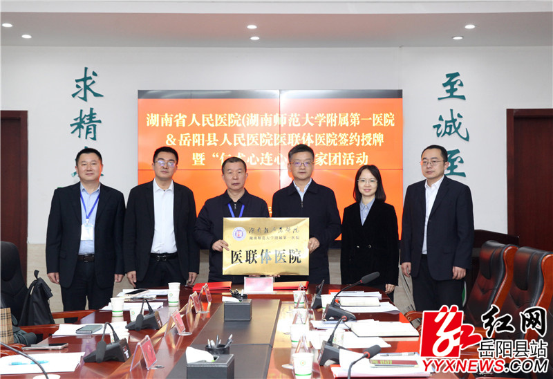嶽陽縣融媒體中心12月10日訊(龔若楓)12月10日,湖南省人民醫院(湖南師範大學附屬第一醫院)與嶽陽縣人民醫院舉行醫聯體簽約授牌儀式暨“仁術心連心”專家團活動,標誌著兩家醫院正式建立緊密型醫療聯合體。此舉旨在推動省級優質醫療資源向基層延伸,讓嶽陽縣及周邊群眾在家門口即可享受高水平醫療服務。湖南省人民醫院黨委副書記、院長肖亞洲,副院長曹彥,嶽陽縣副縣長張文毅等領導、專家出席活動。