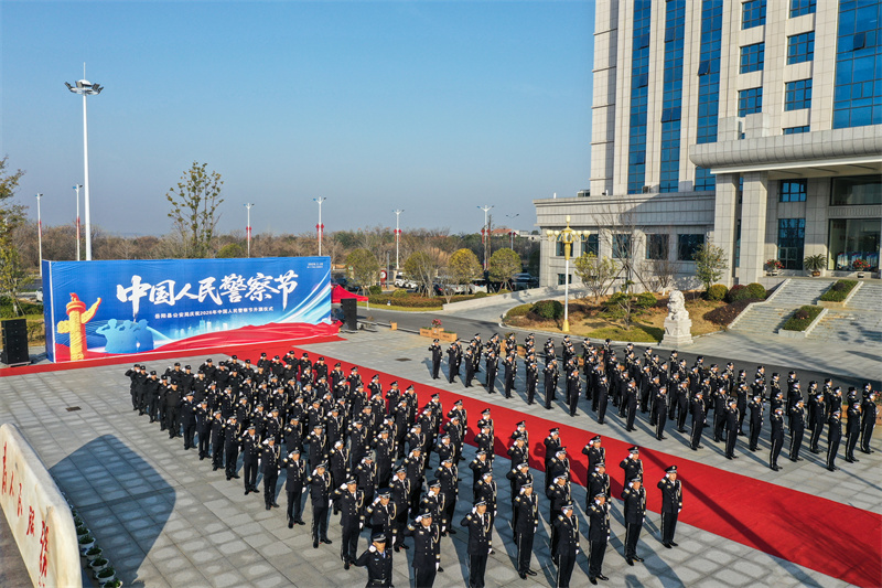 嶽陽縣融媒體中心1月9日訊(周星亮 關源濤)1月9日,在第六個中國人民警察節即將到來之際,縣公安局舉行慶祝2026年中國人民警察節升旗儀式,進一步凝聚警心士氣、築牢忠誠警魂。副縣長、縣公安局局長劉斌清出席儀式並講話。