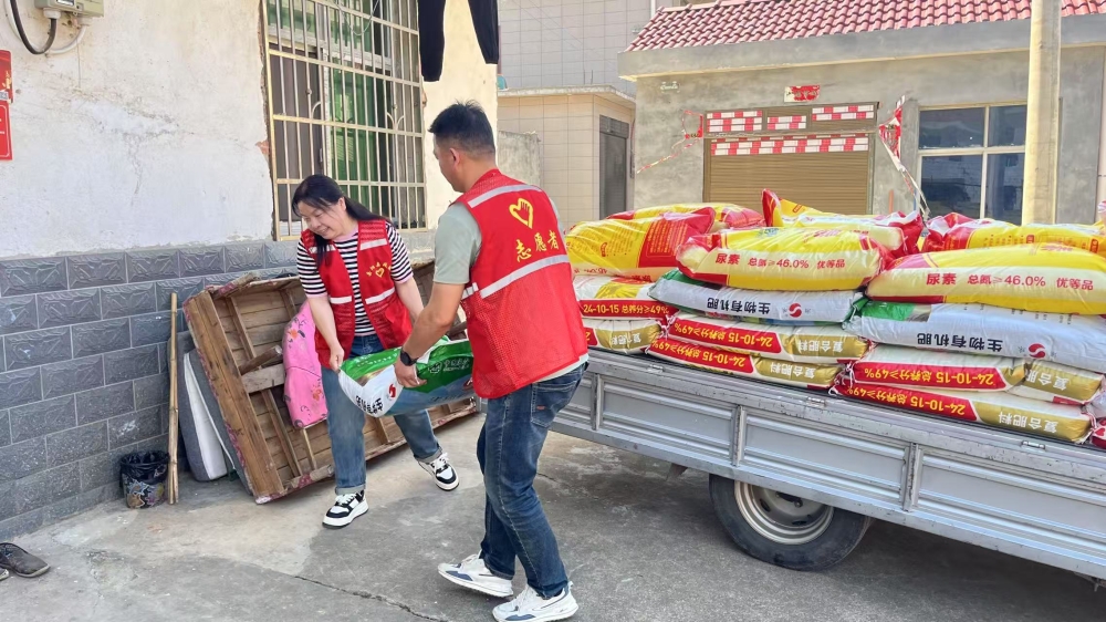 工作人員為結對幫扶家庭送農資
