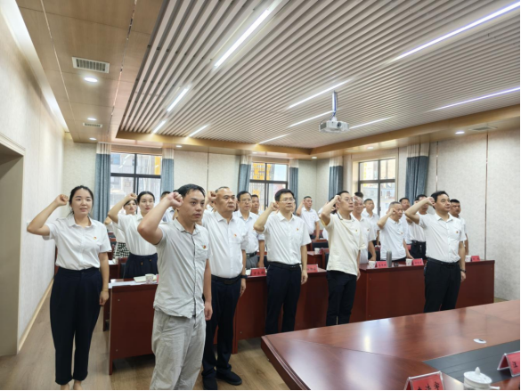 大會在莊嚴的國歌聲中拉開帷幕。會上,預備黨員朱娜宣誓, 全體黨員重溫《入黨誓詞》,由陸雲龍同誌領讀,鏗鏘有力的誓言回蕩在會場,不僅是對入黨初心的深情回望,更彰顯了全體黨員為黨和人民事業奮鬥終身的堅定決心。
