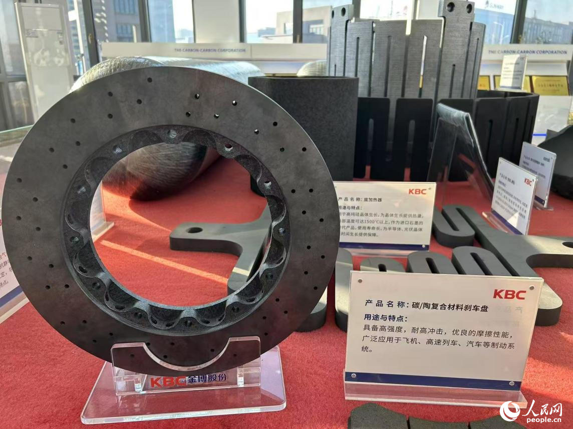 碳陶製動盤、卷對卷碳紙、碳/碳匣缽……湖南金博碳素股份有限公司展館裏,大小形態各異的新材料產品琳琅滿目。