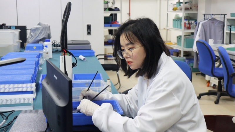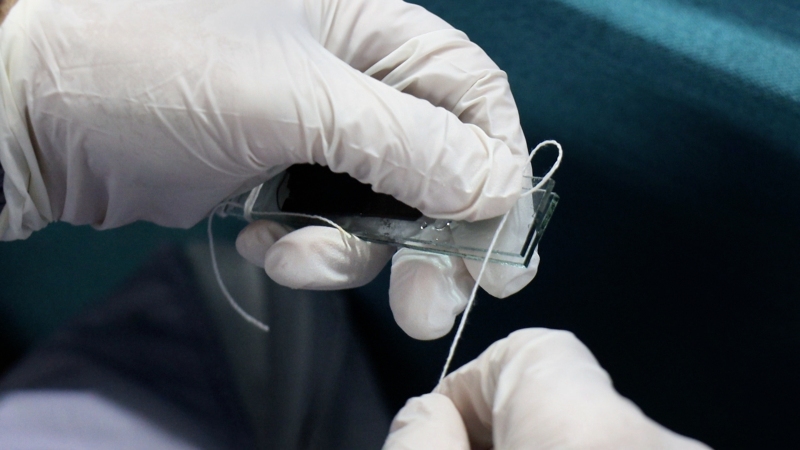 顯微鏡是修複師的“好助手”。他們用顯微鏡觀察纖維,判斷含水量、材質變化、微生物附著情況,在特製溶液中進行消毒,再用毫針調整形態。