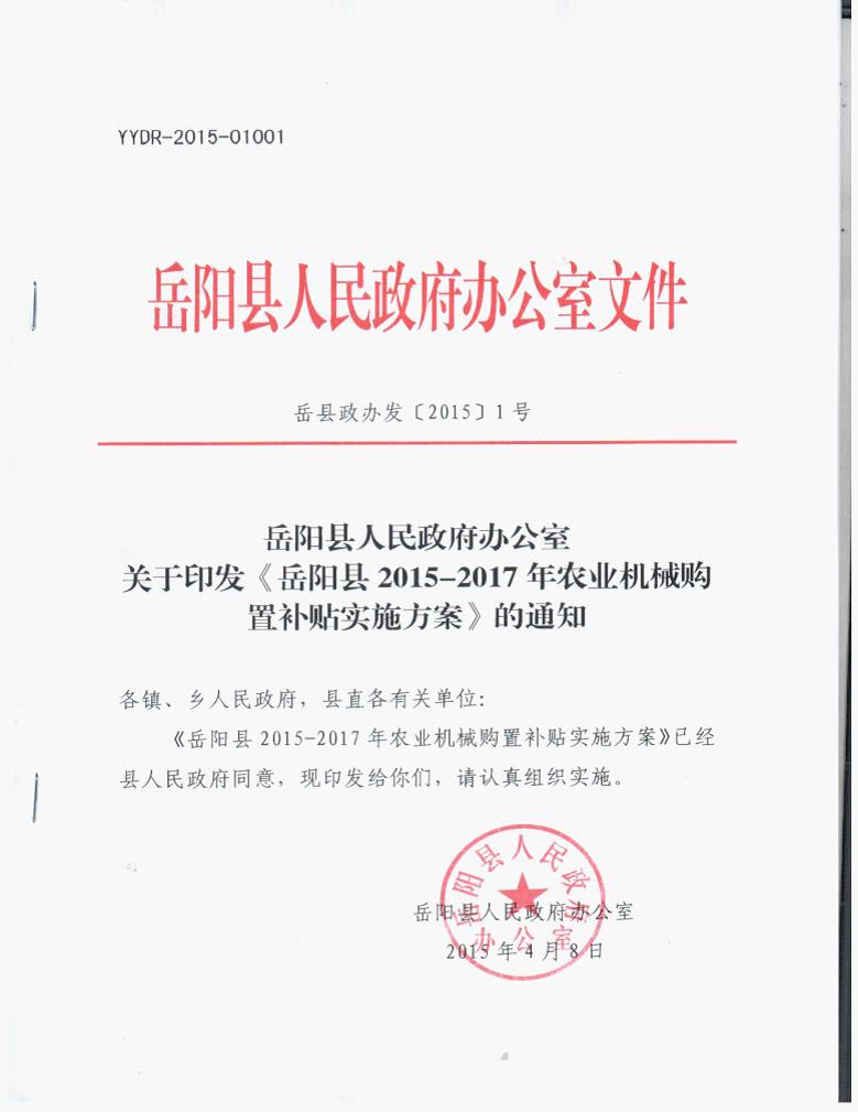 嶽陽縣2015-2017-農業機械購置補貼