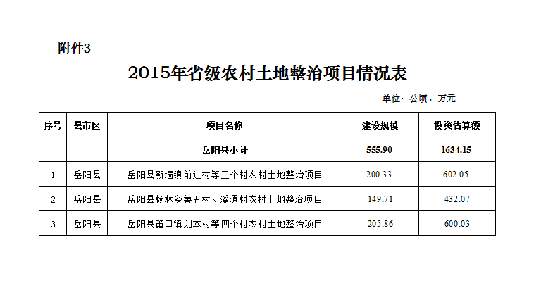 2015年省級農村土地整治項目堅持“公開、公平、公正”的原則,接受公眾監督。公示期間如有異議,請實名向嶽陽縣國土資源局、嶽陽縣財政局投訴。
