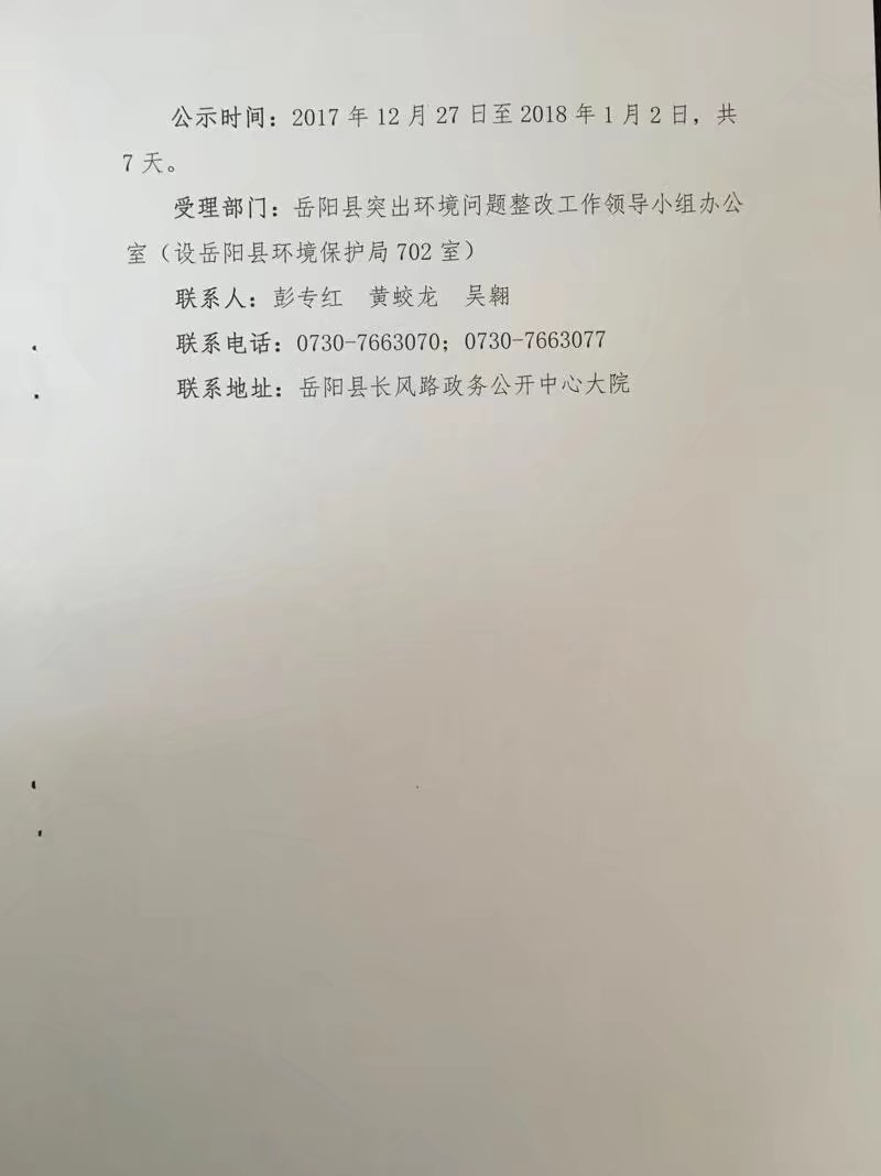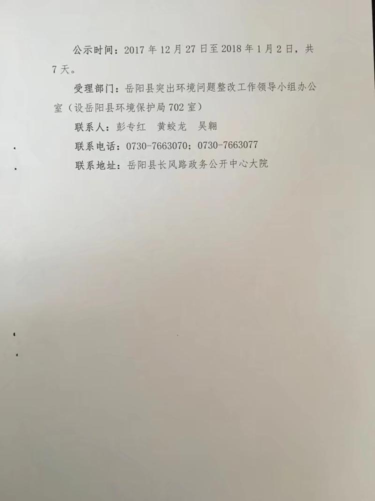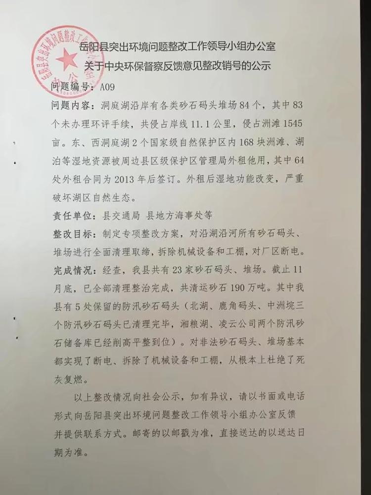 嶽陽縣突出環境問題整改工作領導小組辦公室關於中央環保督察反饋意見整改銷號的公示A09