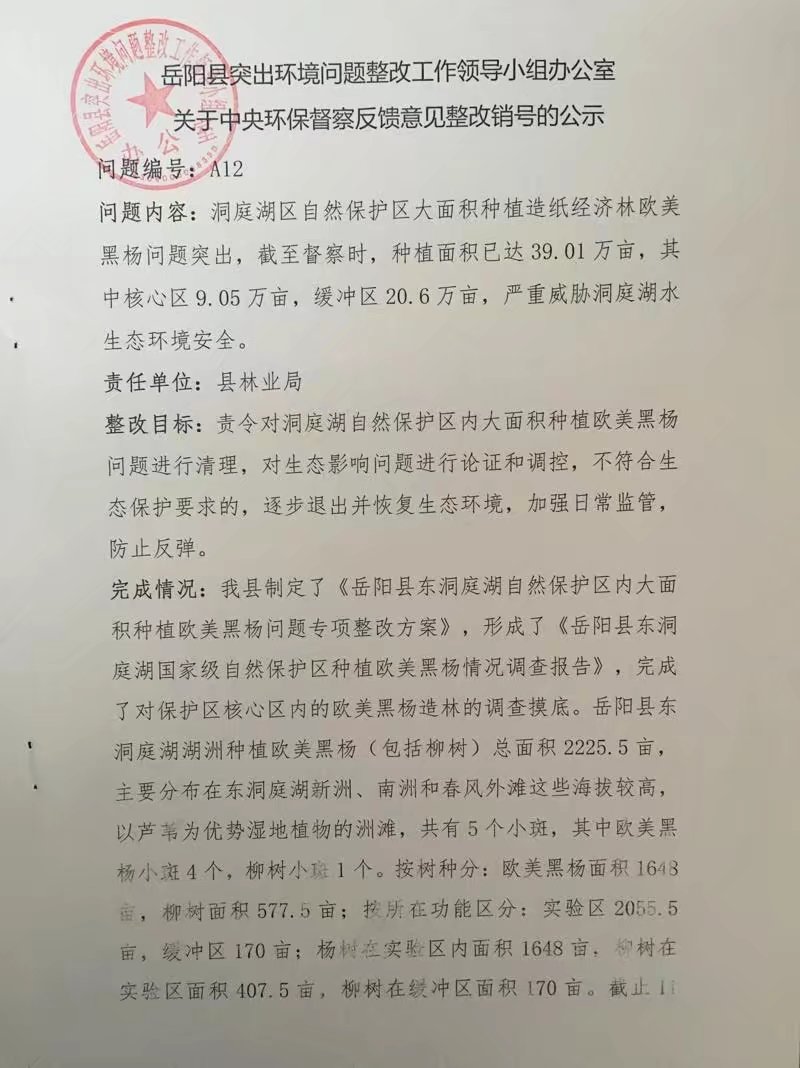 嶽陽縣突出環境問題整改工作領導小組辦公室關於中央環保督察反饋意見整改銷號的公示A12