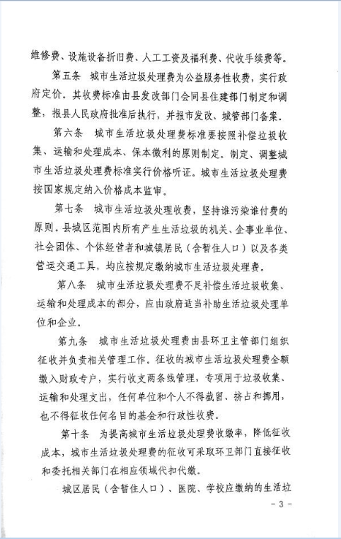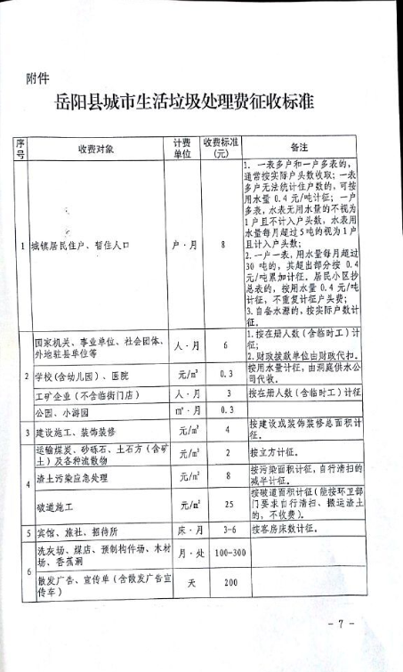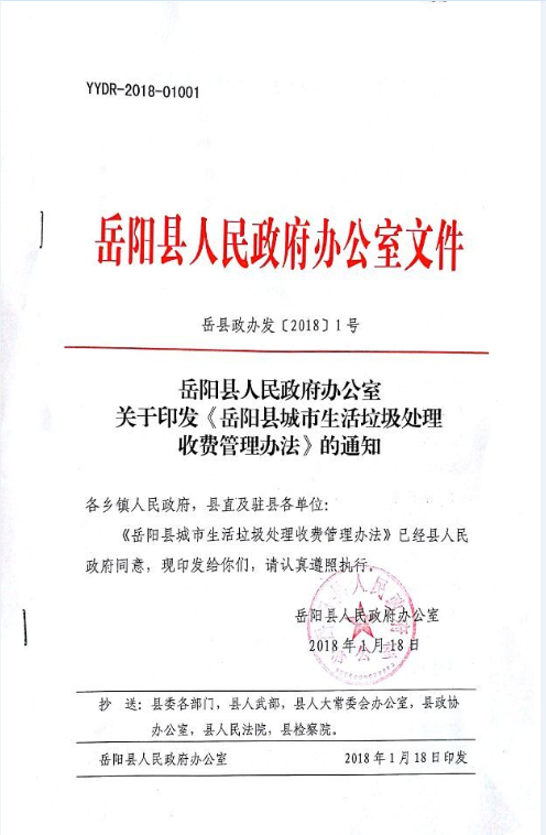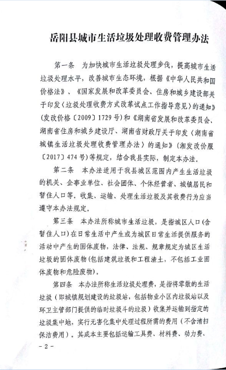 關於印發《嶽陽縣城市生活垃圾處理收費管理辦法》的通知