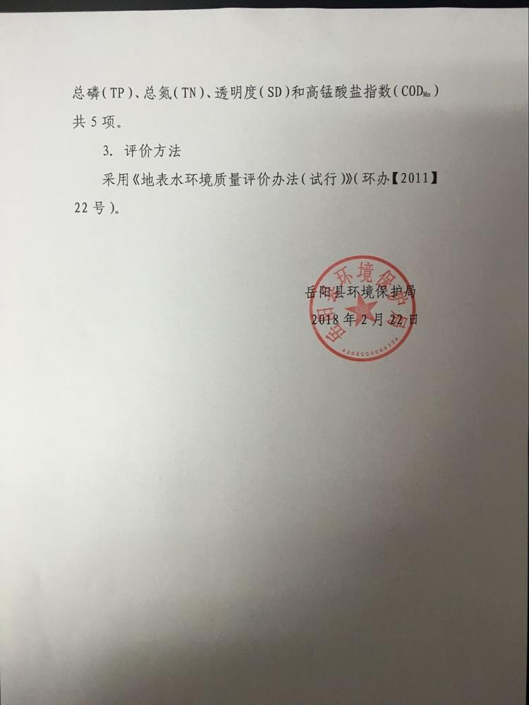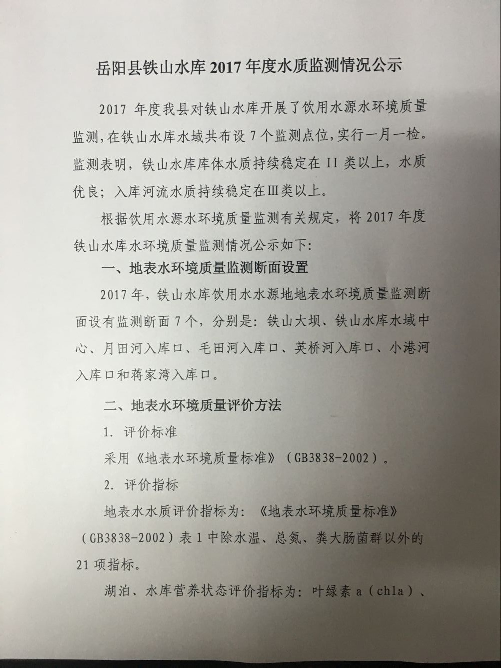 嶽陽縣鐵山水庫2017年度水質監測情況公示
