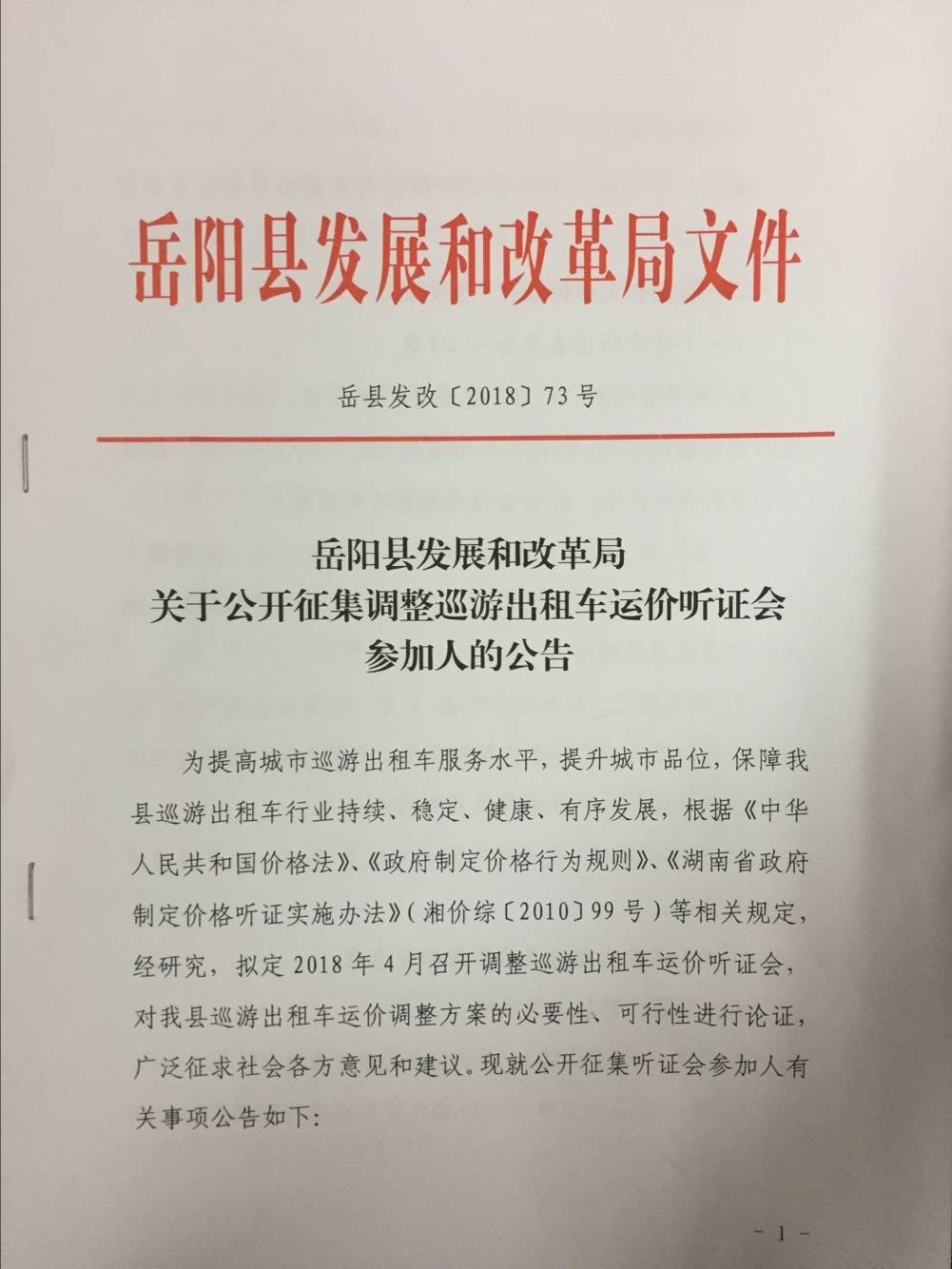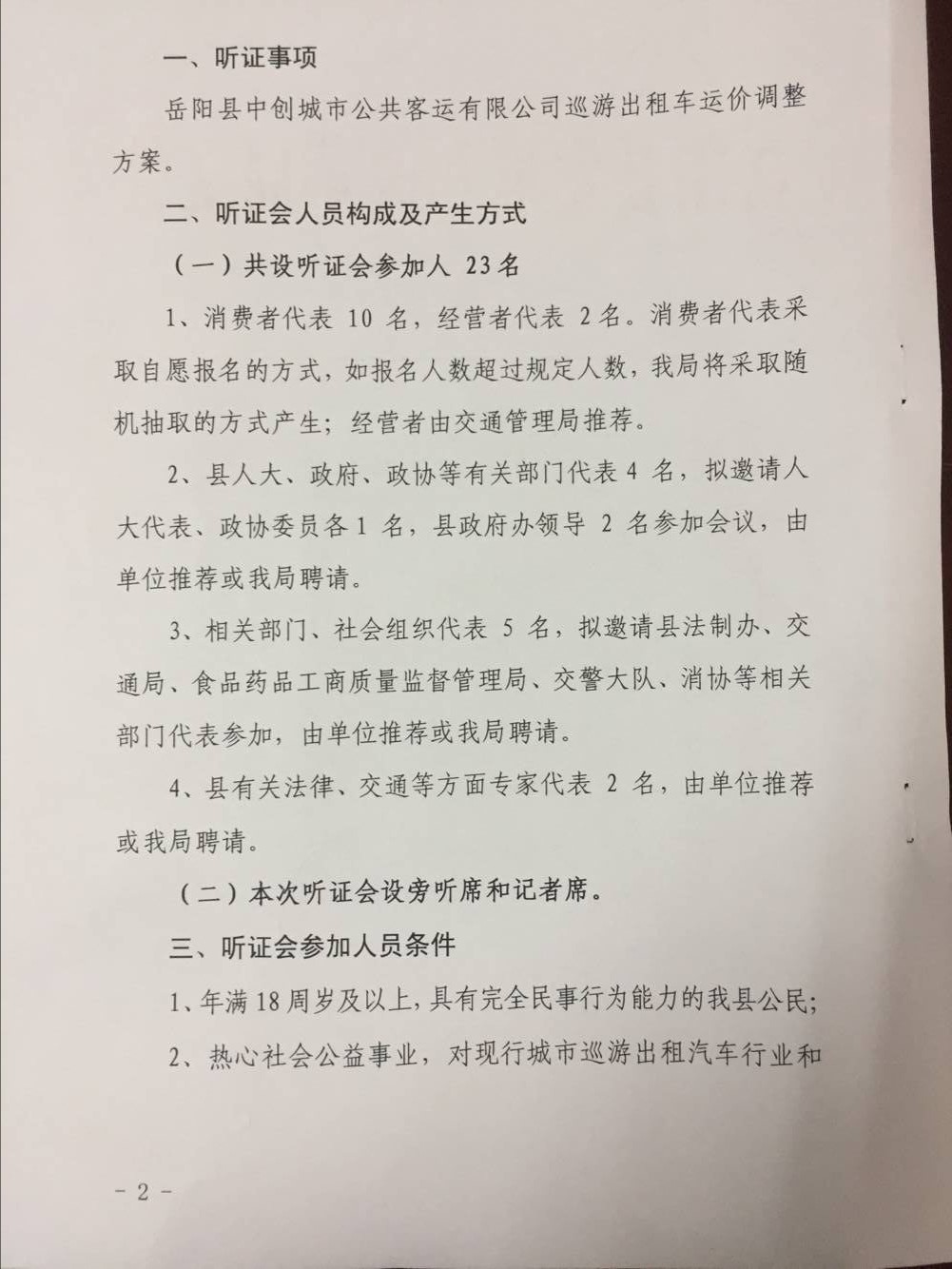 關於公開征集調整巡遊出租車運價聽證會參加人的公告