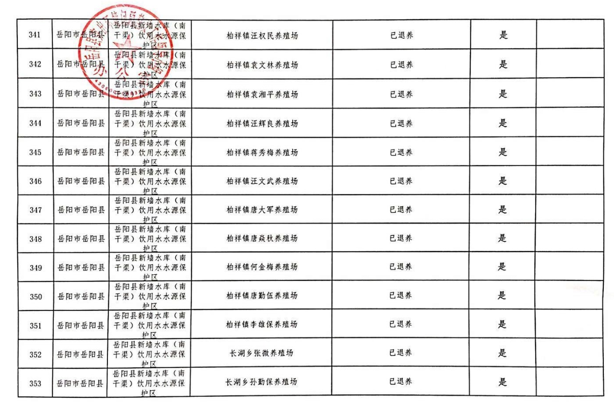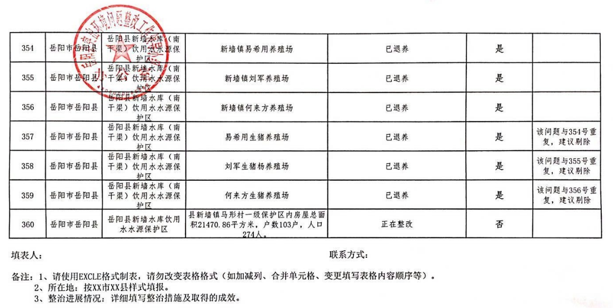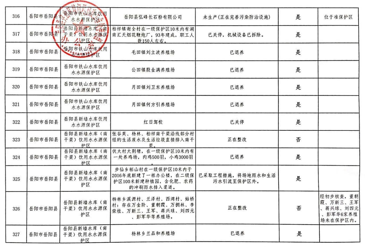 嶽陽縣縣級以上集中式飲用水水源地環境問題清理整治進展情況統計表