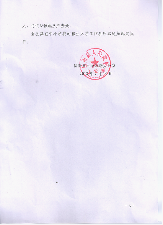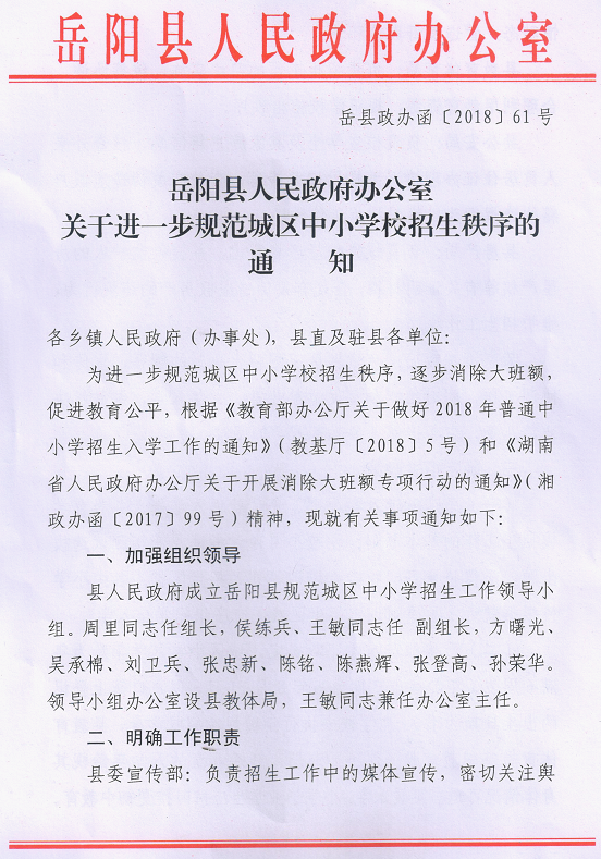嶽陽縣人民政府辦公室關於進一步規範城區中小學校招生秩序的通知