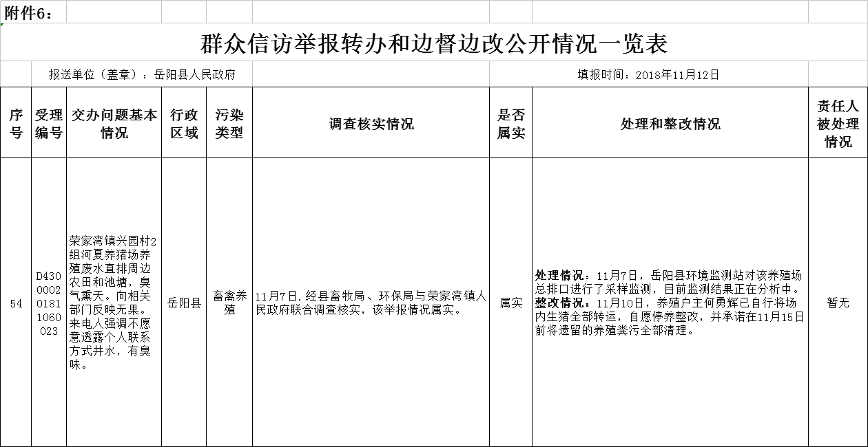 中央生態環境保護督察“回頭看”群眾信訪舉報轉辦和邊督邊改公開情況一覽表 (2018年11月12日)