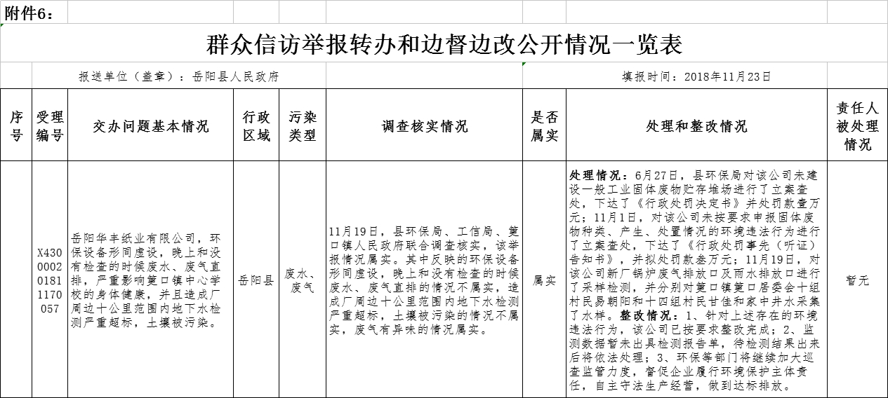 中央生態環境保護督察“回頭看”群眾信訪舉報轉辦和邊督邊改公開情況一覽表 (2018年11月23日)