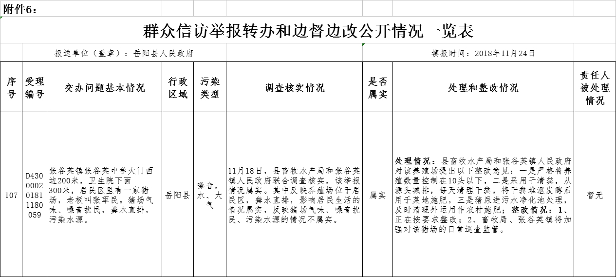 中央生態環境保護督察“回頭看”群眾信訪舉報轉辦和邊督邊改公開情況一覽表 (2018年11月24日)