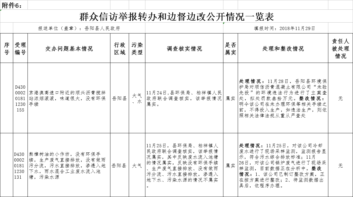 中央生態環境保護督察“回頭看”群眾信訪舉報轉辦和邊督邊改公開情況一覽表 (2018年11月29日)