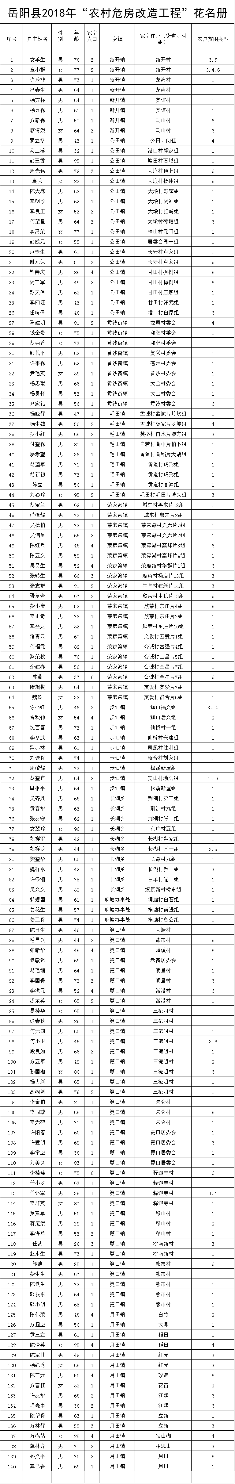 嶽陽縣2018年“農村危房改造工程”花名冊公示