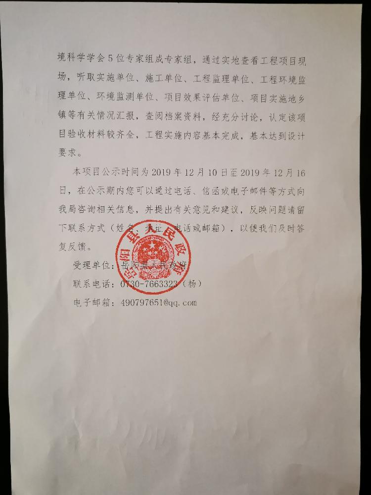 嶽陽縣新開釩礦區重金屬汙染場地修複項目效果評估公示