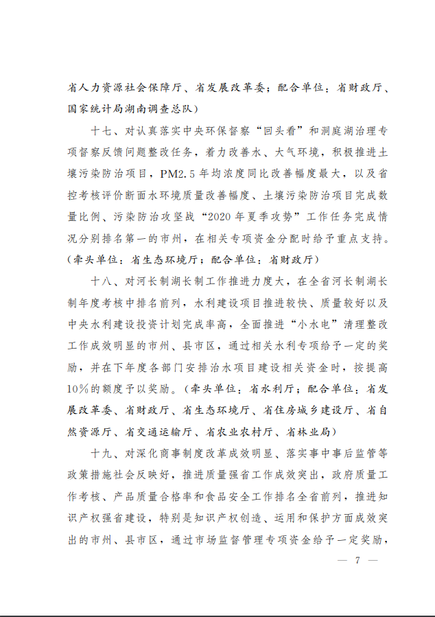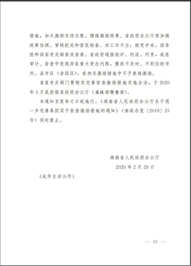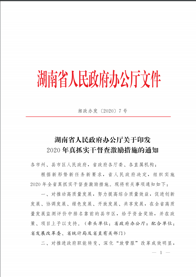 湖南省人民政府辦公廳關於印發2020年真抓實幹督查激勵措施的通知