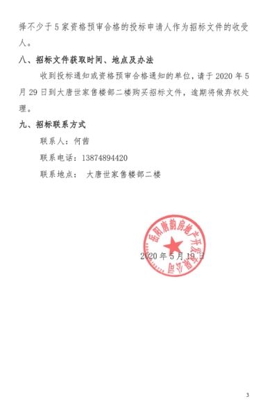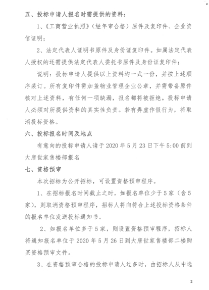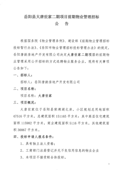 附件:嶽陽縣大唐世家二期項目前期物業管理招標公告