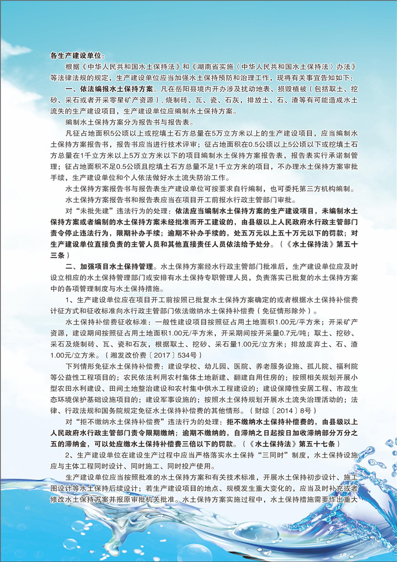 嶽陽縣水利局關於生產建設單位履行水土保持法定義務的告知書
