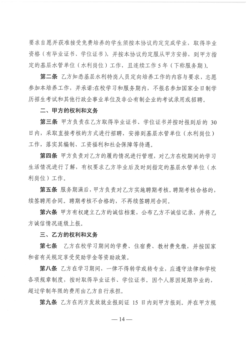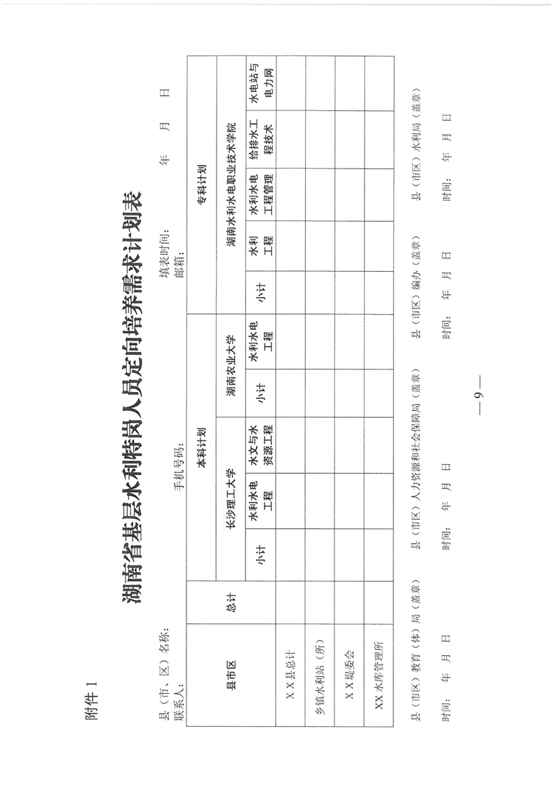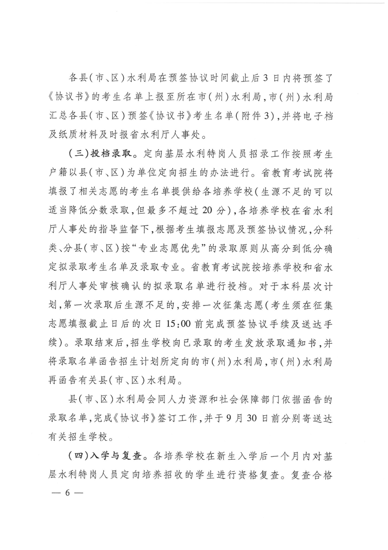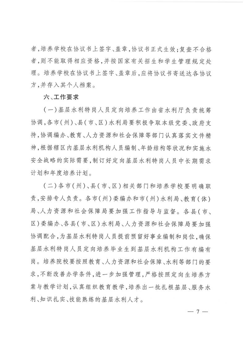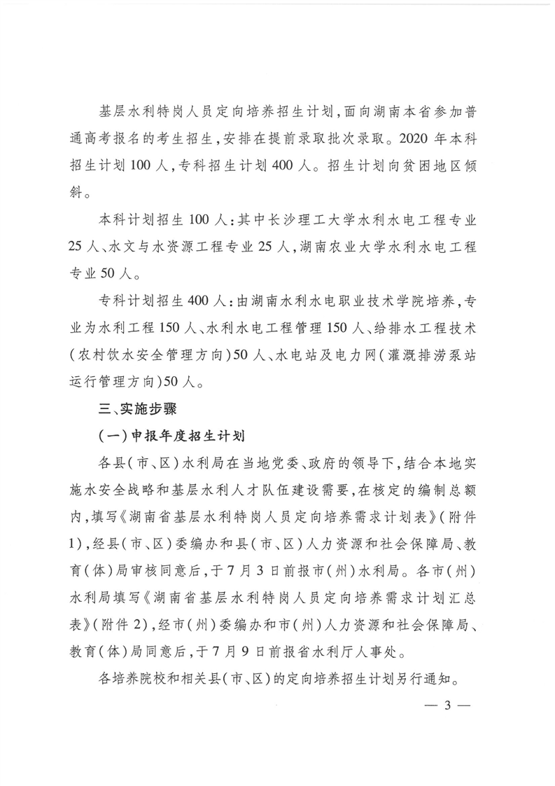 湖南省《關於做好基層水利特崗人員定向培養工作的通知》