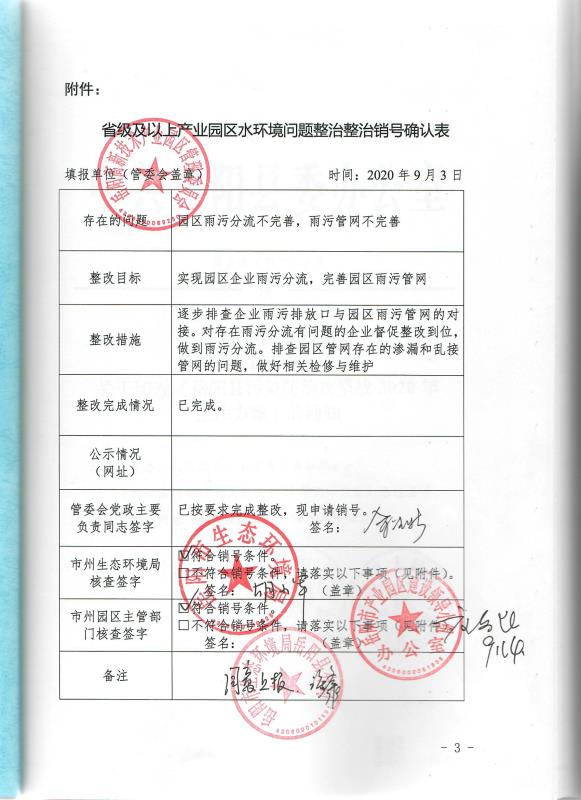 省級及以上產業園區水環境問題整治政治銷號