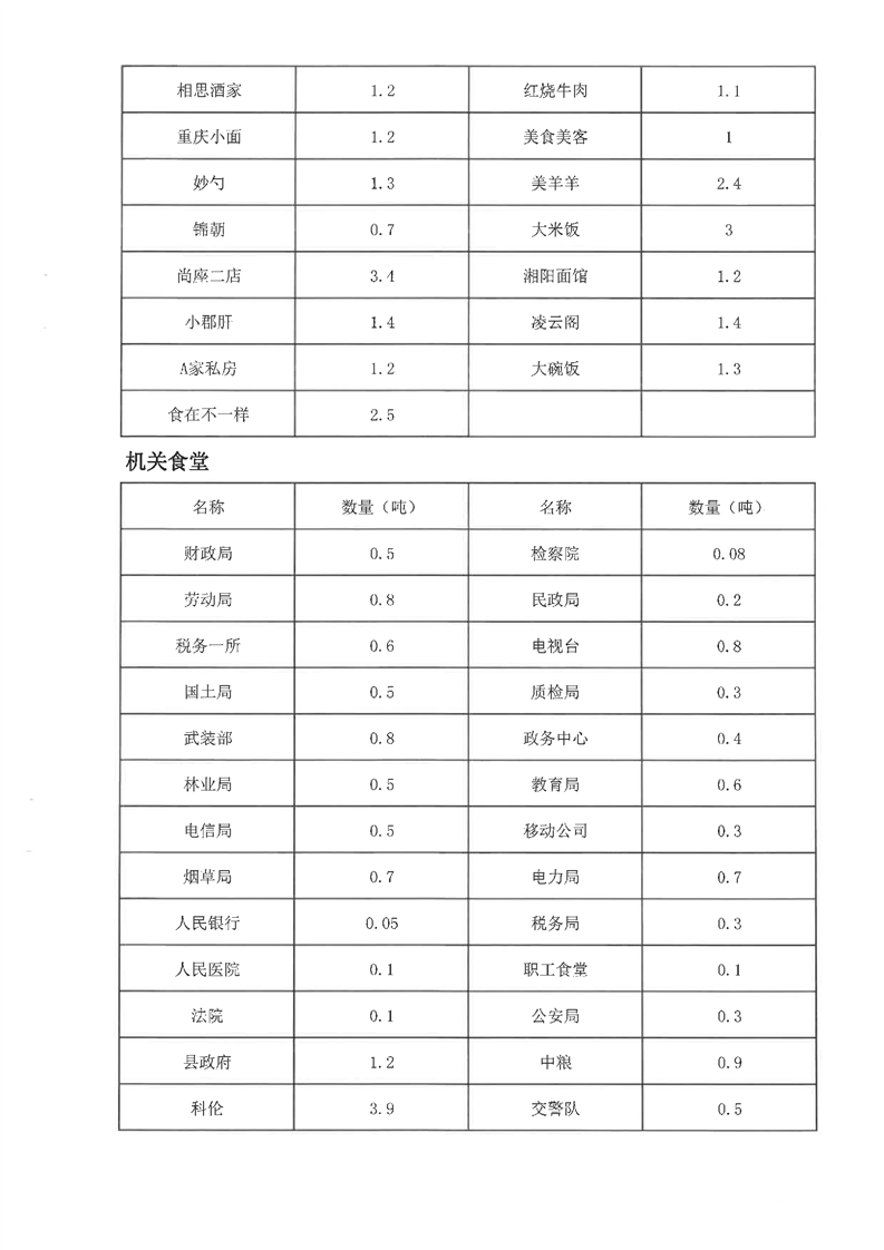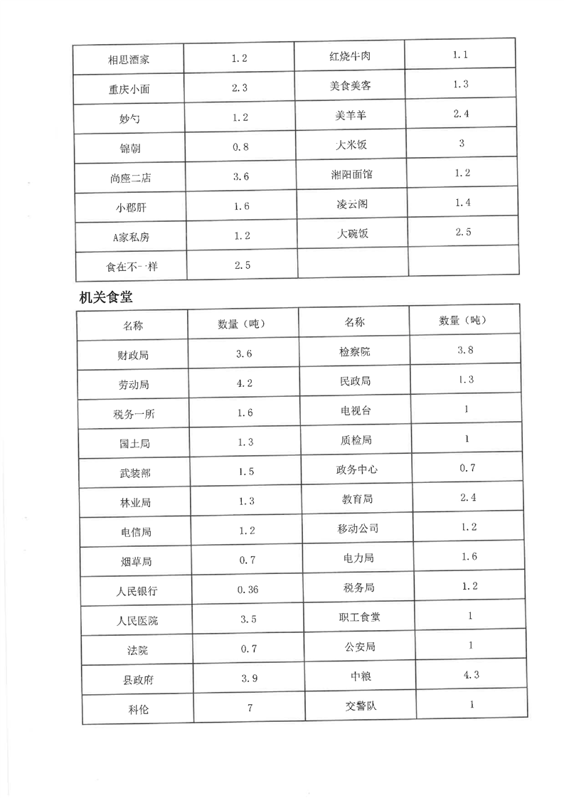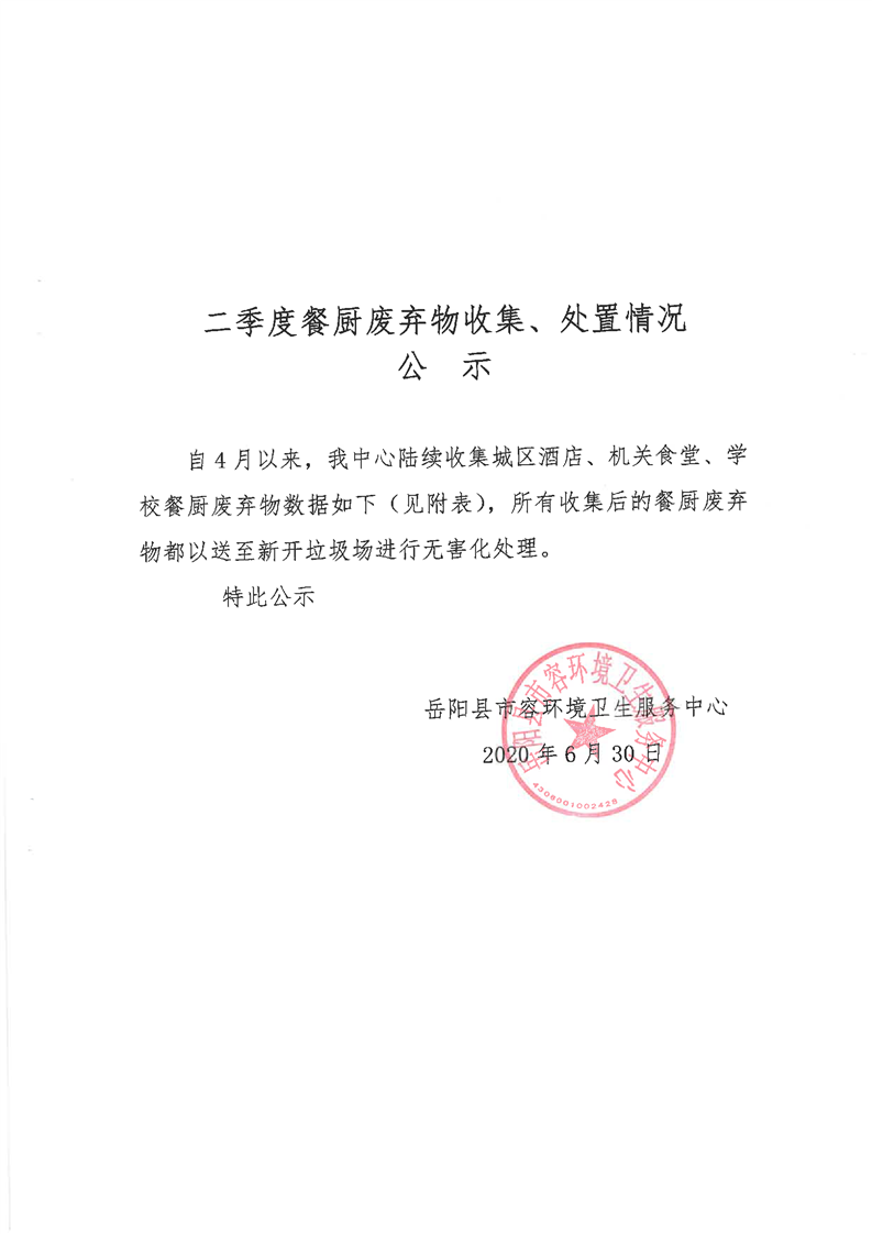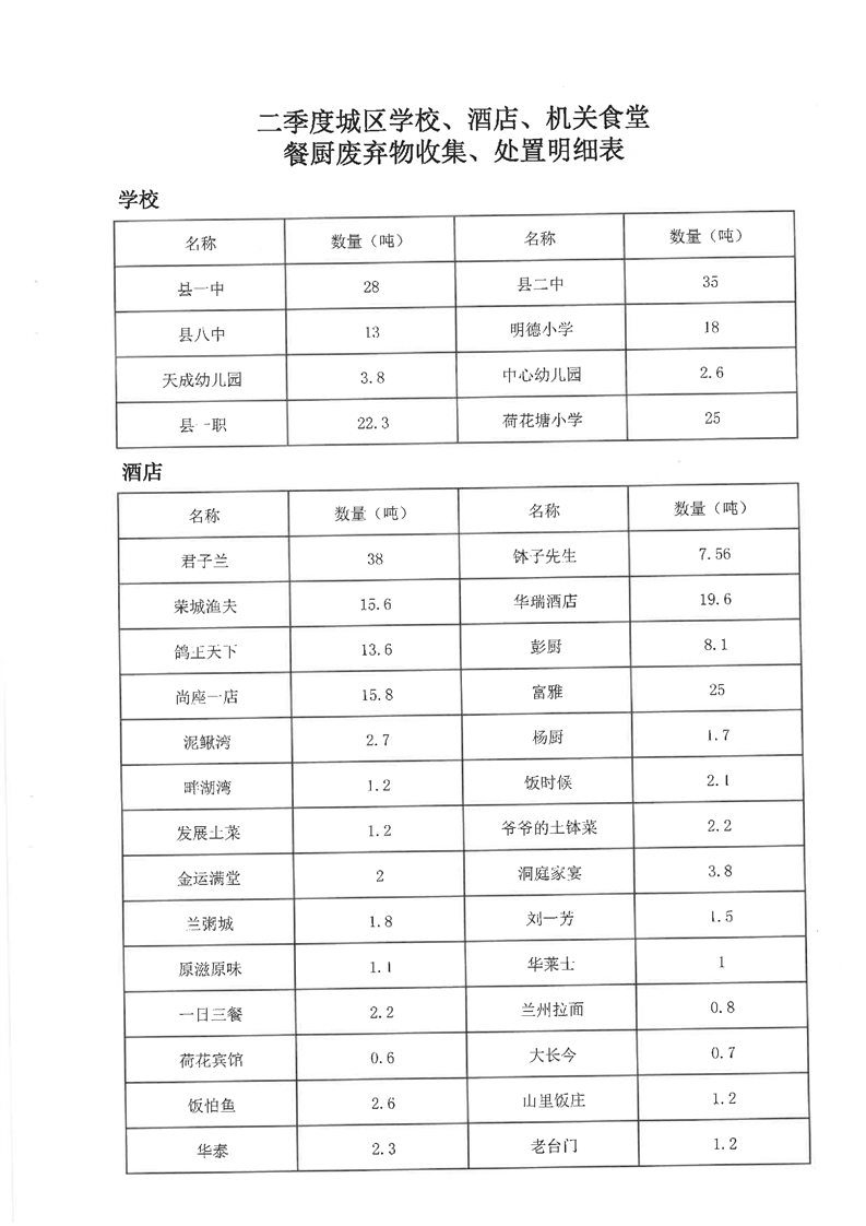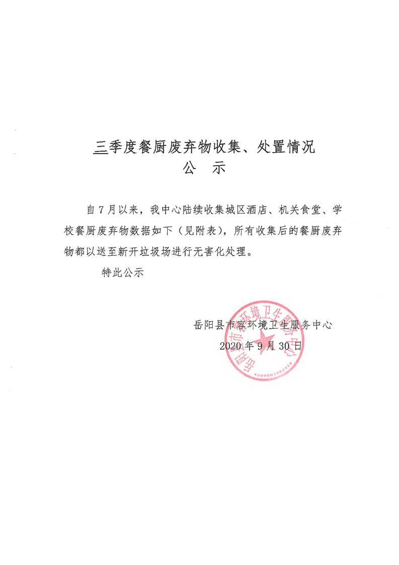 環衛中心2020年1-3季度餐廚垃圾收集公示台賬