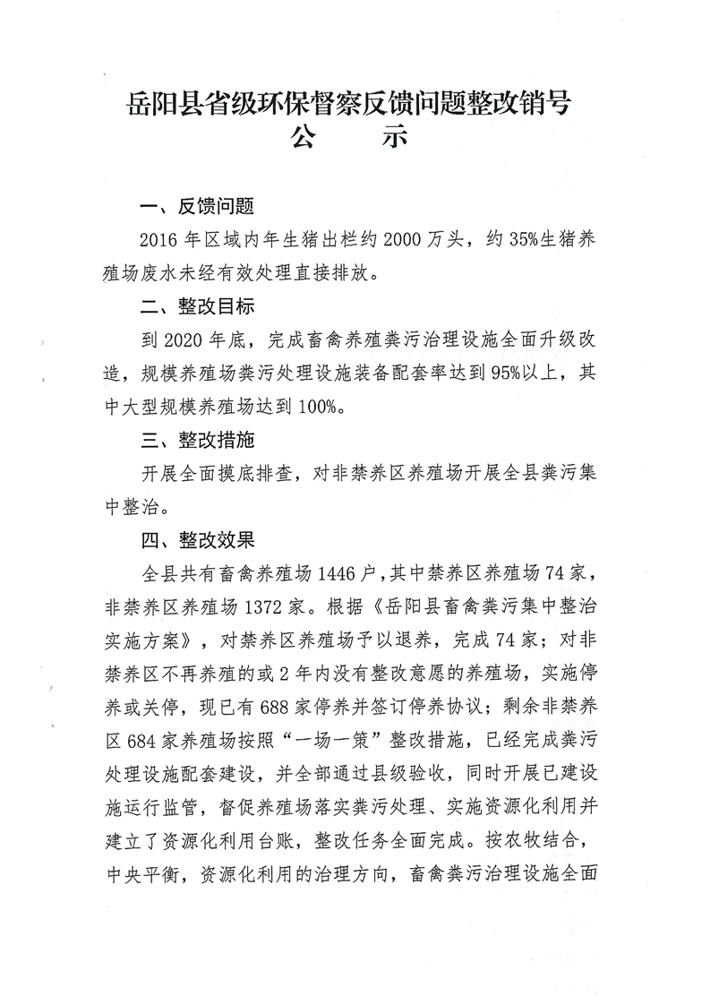 嶽陽縣省級環保督察反饋意見整改公示表1