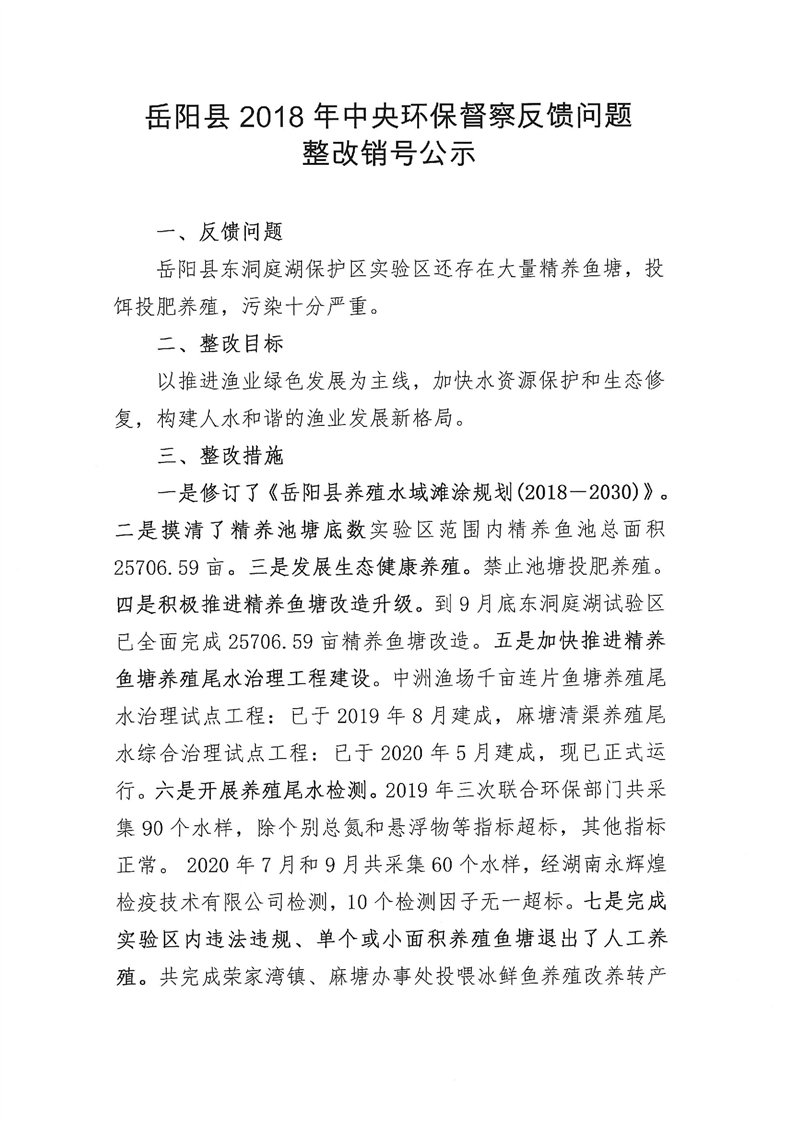 嶽陽縣2018年中央環保督察反饋問題整改銷號公示