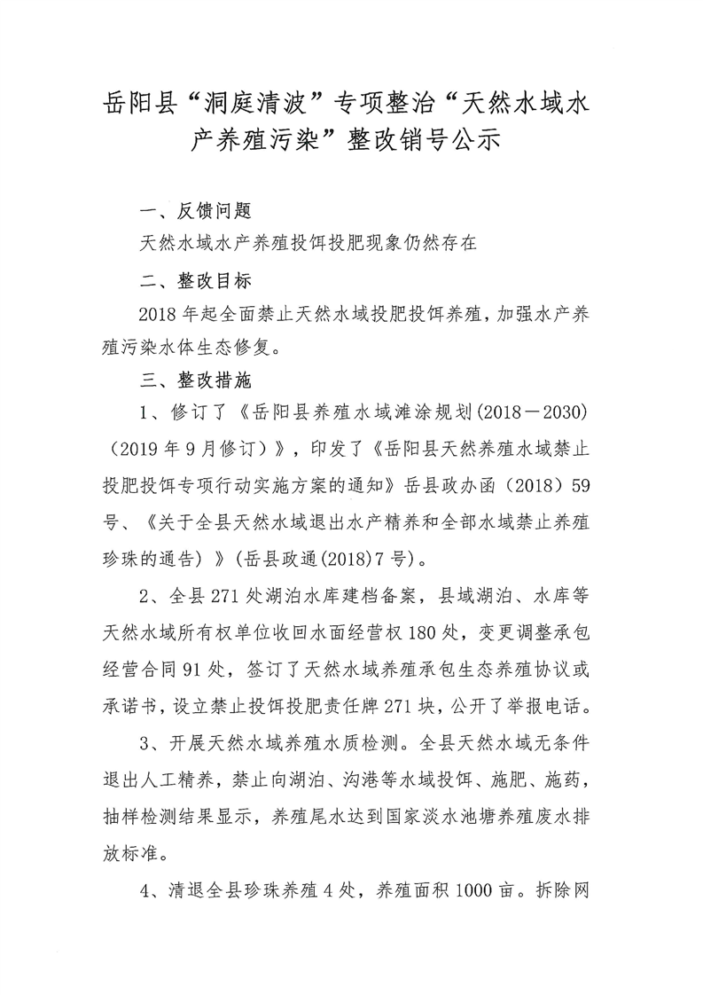嶽陽縣“洞庭清波”專項整治“天然水域水產養殖汙染”整改銷號公示表 (2)