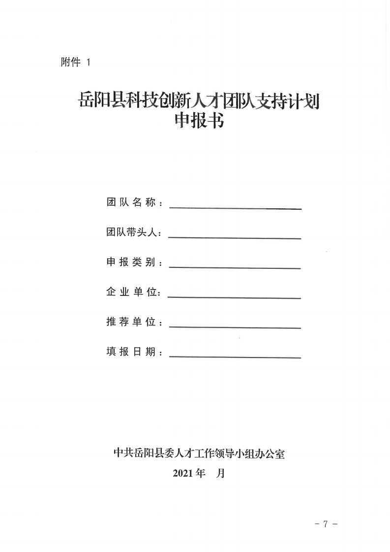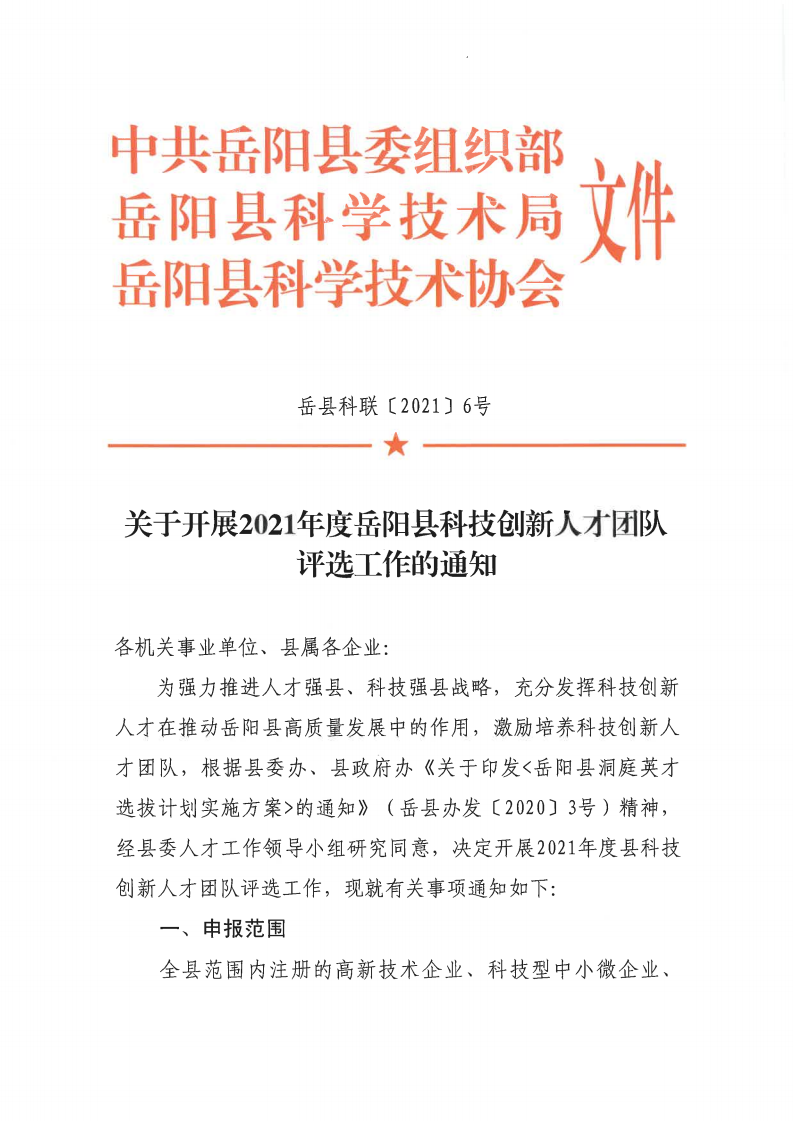 關於開展2021年度嶽陽縣科技創新人才團隊評選工作的通知