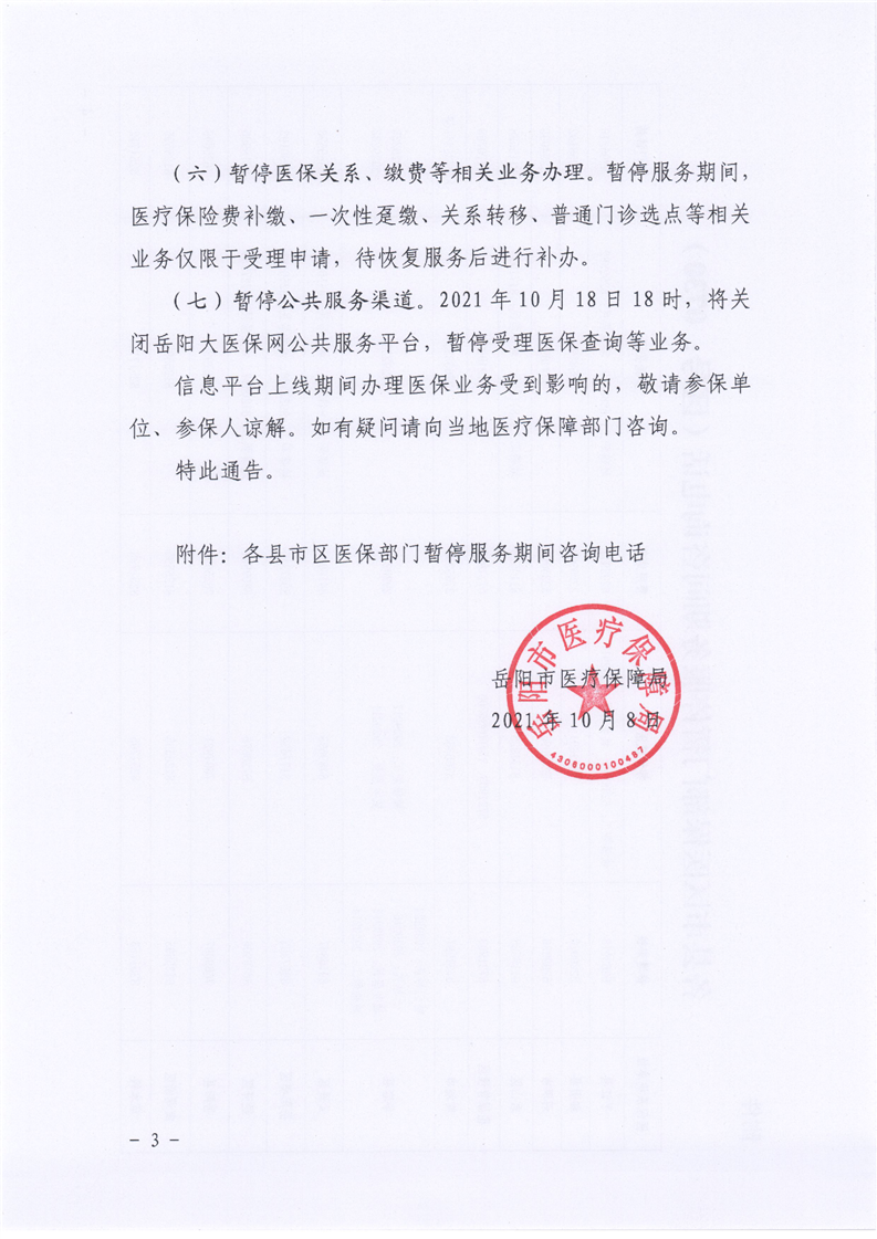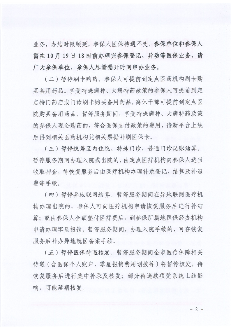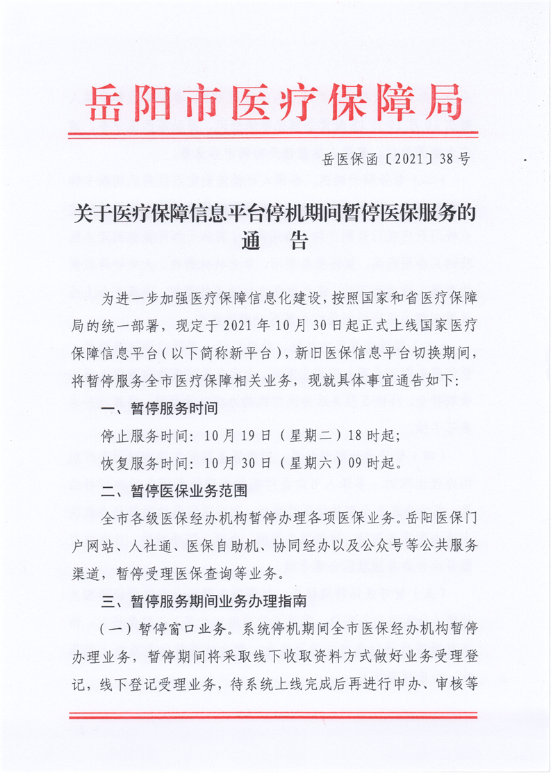 關於醫療保障信息平台停機期間暫停醫保服務的通告