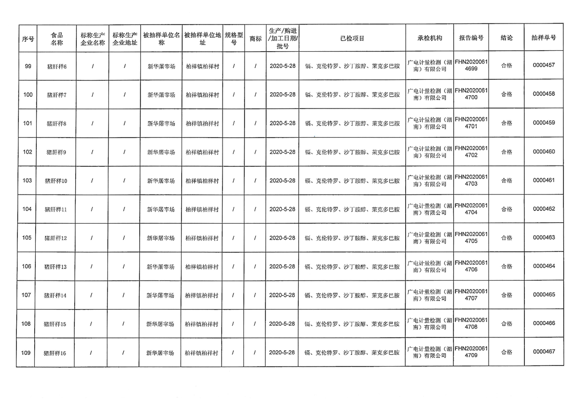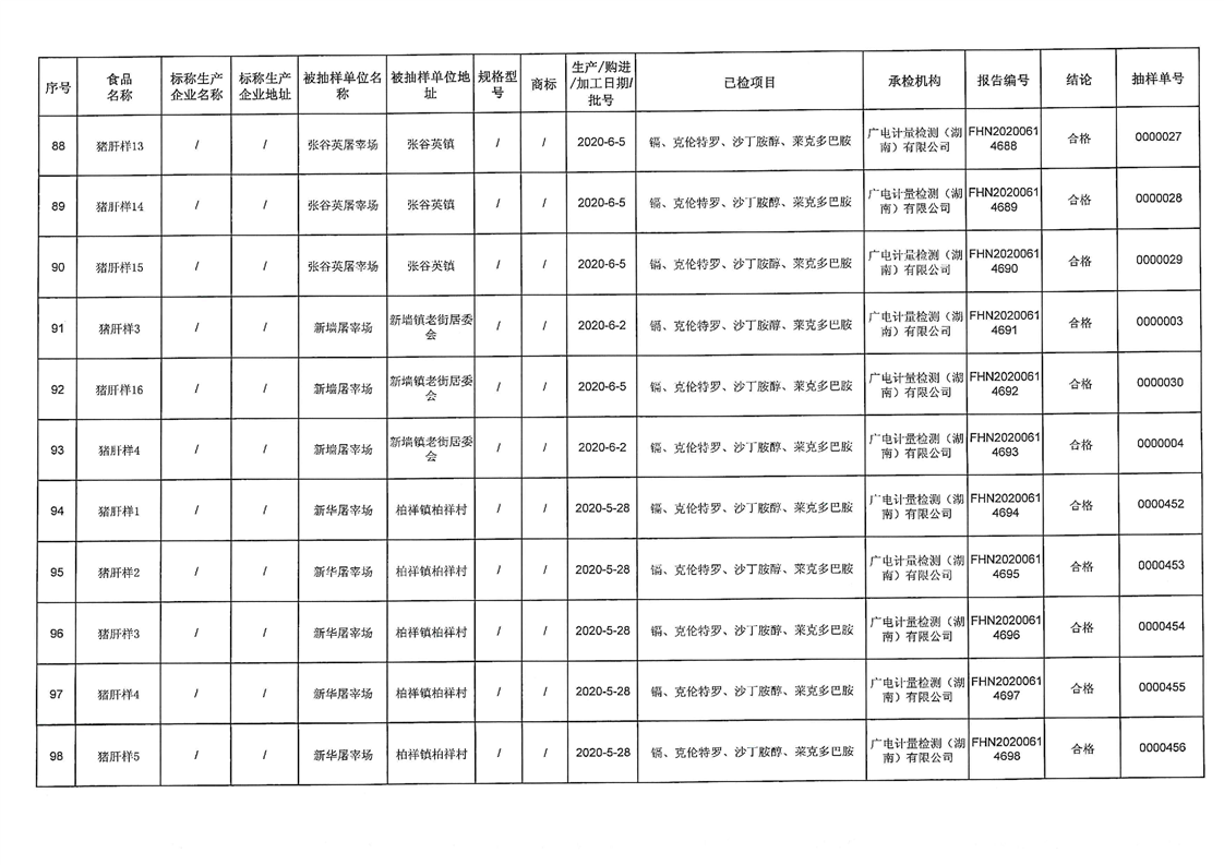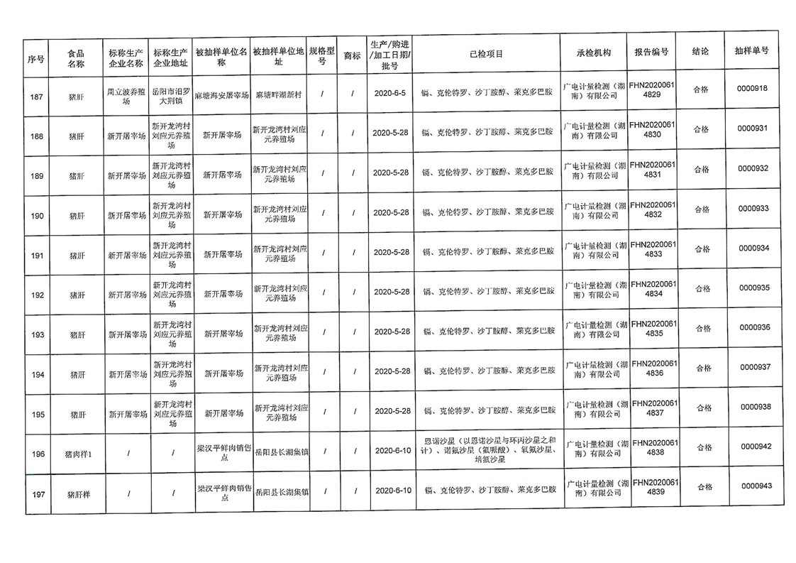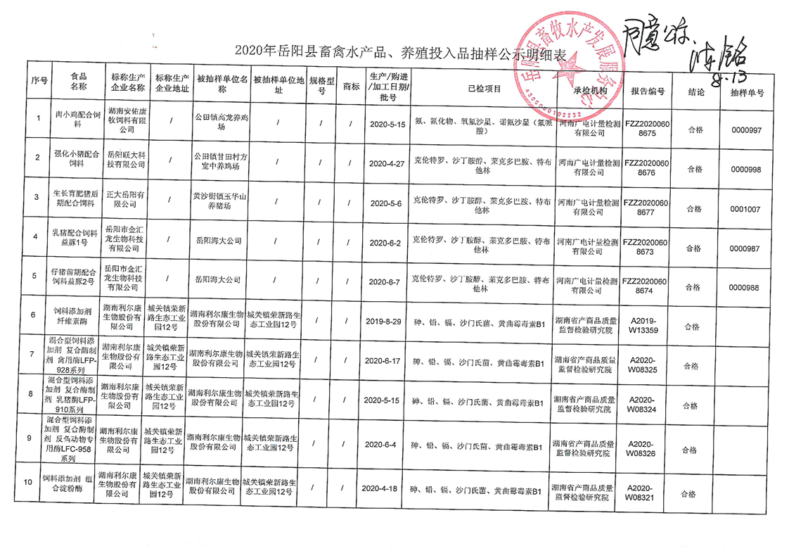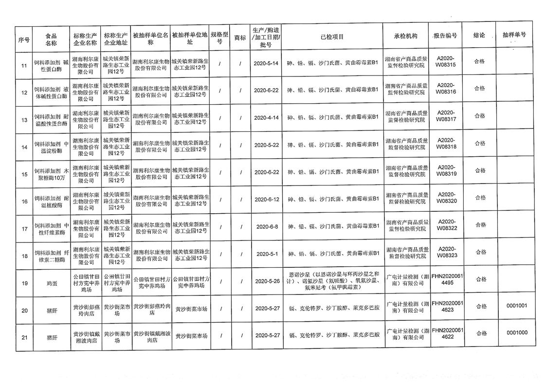 2021年度畜禽水產品、養殖投入品定量檢測信息公示明細表