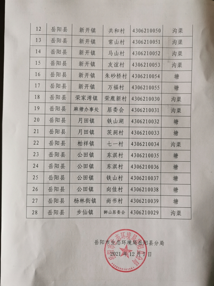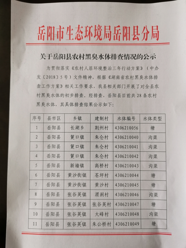 關於嶽陽縣農村黑臭水體排查情況的公示
