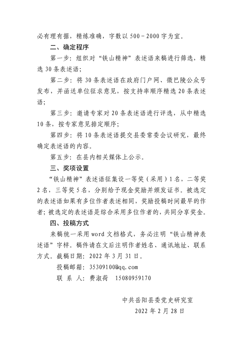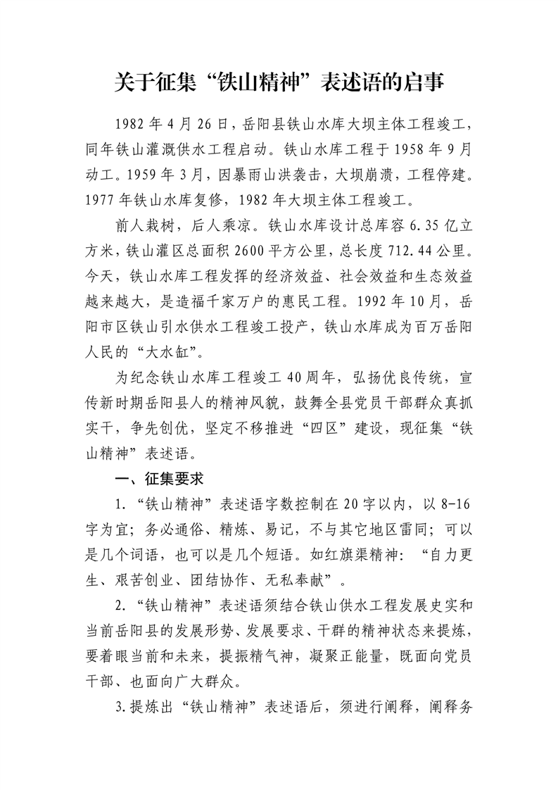 關於征集“鐵山精神”表述語的啟事